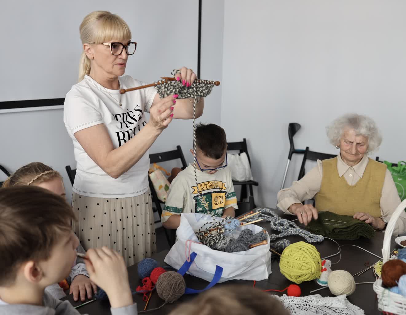 Najmłodsi z seniorami dziergali na drutach oraz szydełkowali. Okazją do wspólnego spędzenia czasu były rozpoczynające się w Lublinie obchody Europejskiego Dnia Solidarności Międzypokoleniowej.