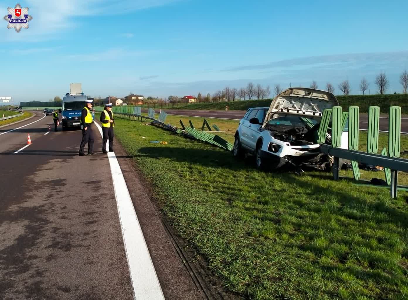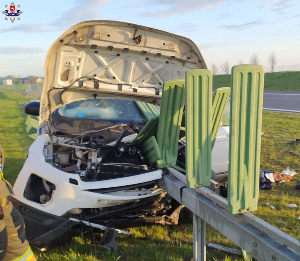 Ze wstępnych ustaleń wynika, że kierujący samochodem marki Range Rover jadąc od Warszawy zjechał z drogi i uderzył w metalowe bariery, który wbiły się w samochód. 50-latek śmigłowcem został przetransportowany do jednego z lubelskich szpitali. Jego stan jest poważny.