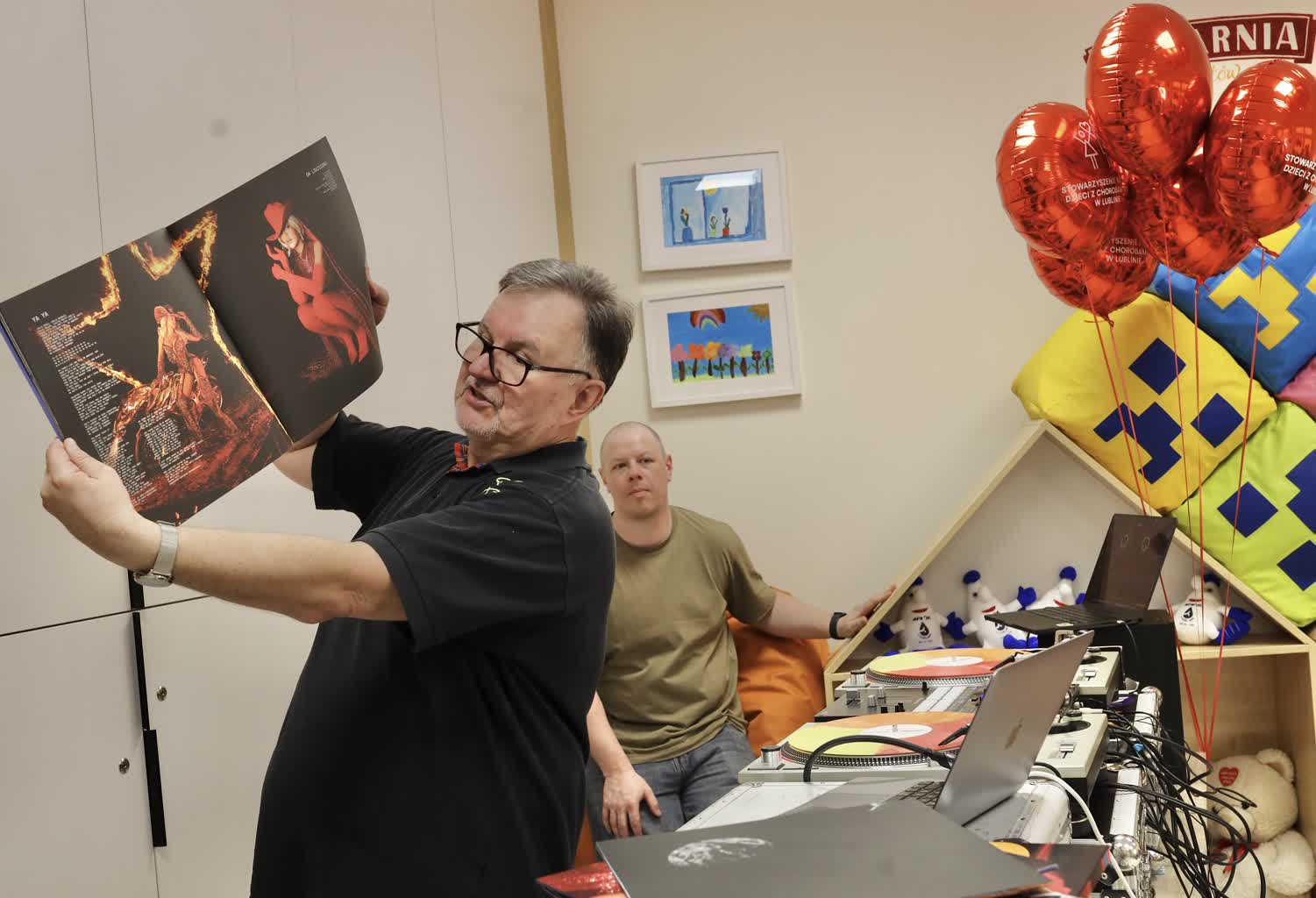 Dziennikarz muzyczny Hirek Wrona oraz DJ Kebs odwiedzili małych pacjentów Uniwersyteckiego Szpitala Dziecięcego, żeby zdradzić im tajniki pracy DJ-a.