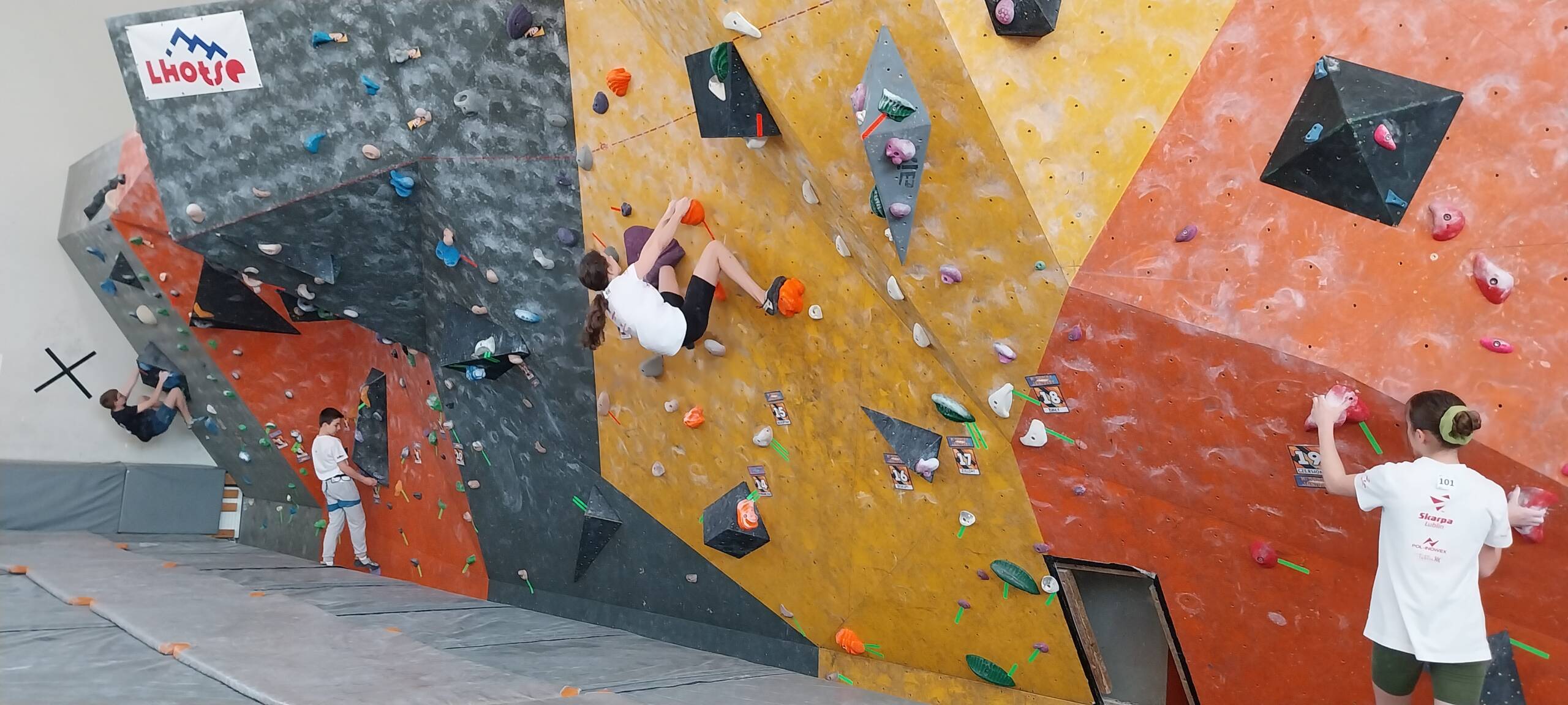 – Na zawodach jest bardzo fajnie, panuje miła atmosfera, są fajni instruktorzy – mówią uczestnicy. – Na razie idzie mi dobrze, ale zrobiłam do końca tylko trzy baldy, teraz będę szła na linę. Idzie mi tak pół na pół. Zrobiłem już większość tych łatwych, zostały mi trudne. Teraz strasznie pieką mnie palce. Bardzo mi się podoba. Byłem już na wielu takich zawodach, moim zdaniem są dobrze zrobione, bo w dosyć małej przestrzeni jest wciśniętych dużo baldów, więc dużo osób może przechodzić.