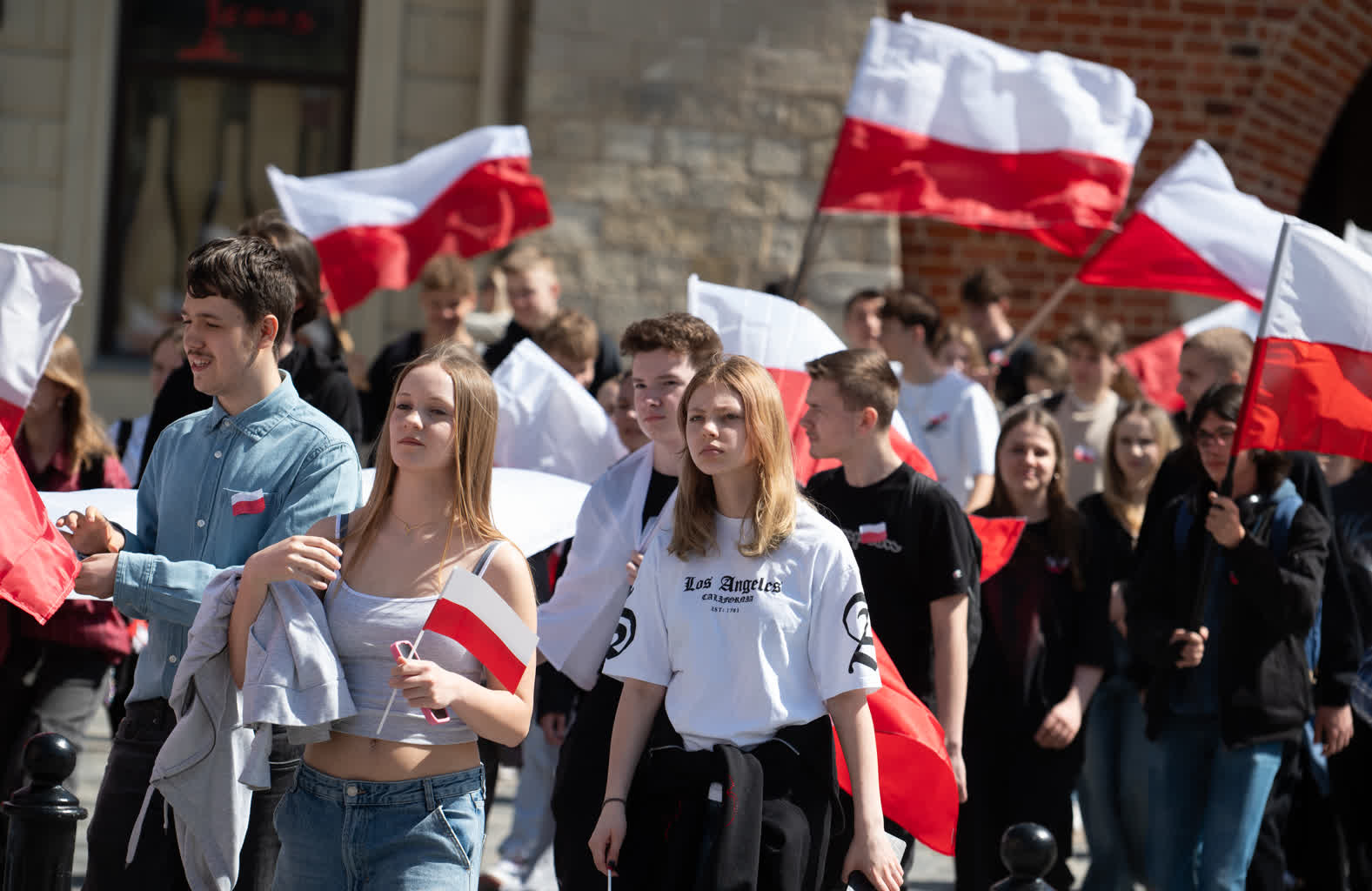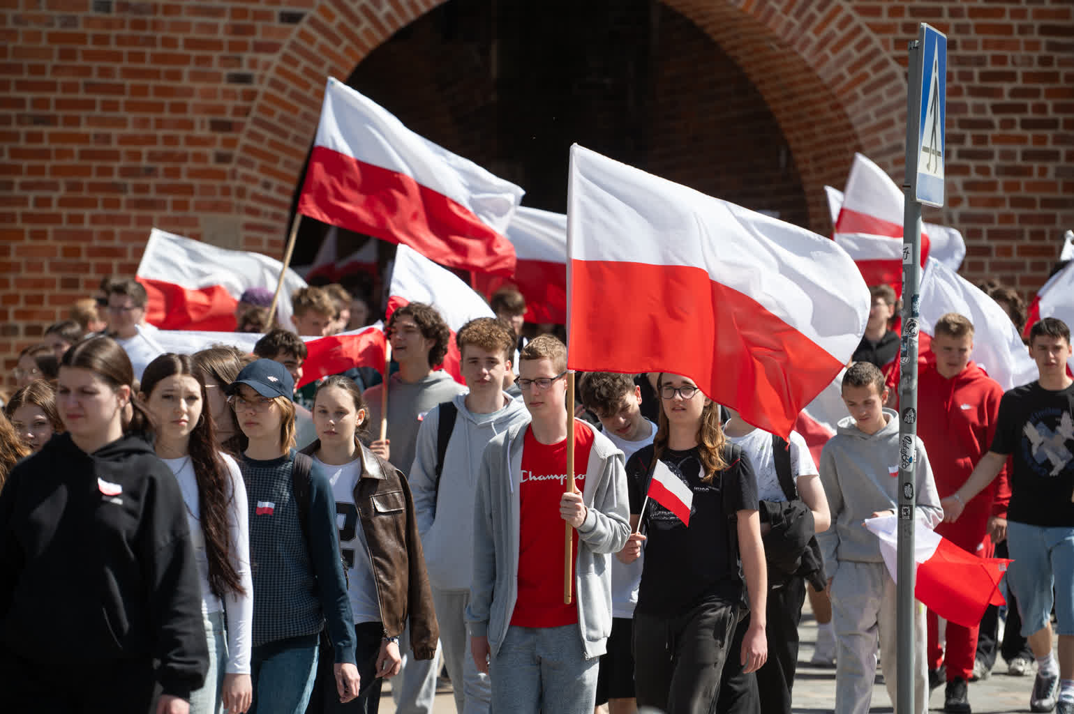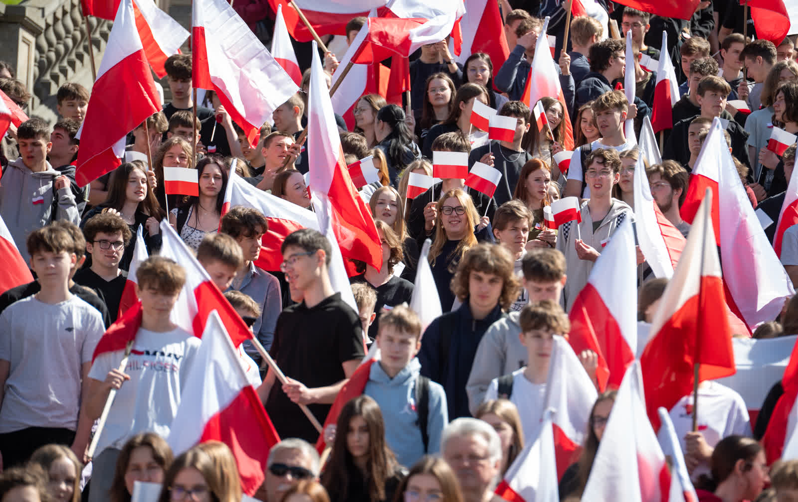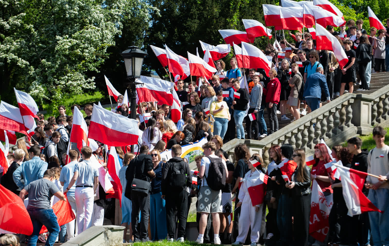 Z okazji przypadającego 2 maja Dnia Flagi społeczność Zespołu Szkół nr 1 im. Władysława Grabskiego zorganizowała patriotyczny przemarsz z biało-czerwonymi flagami sprzed budynku szkoły na plac Litewski.
