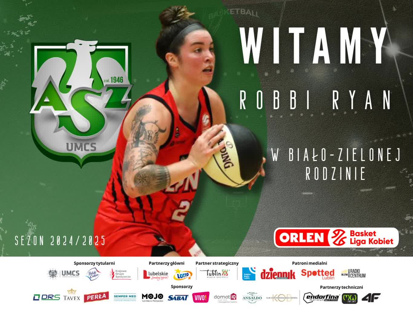 Zgodnie z zapowiedzią AZS UMCS Lublin rozpoczął ogłaszanie składu drużyny koszykarek na sezon 2025/2026. Do lubelskiej ekipy dołączy Robbi Ryan. Najlepsza koszykarka rundy zasadniczej ekstraklasy. 27-letnia Amerykanka mierzy 175 centymetrów i gra na pozycjach obwodowych.