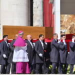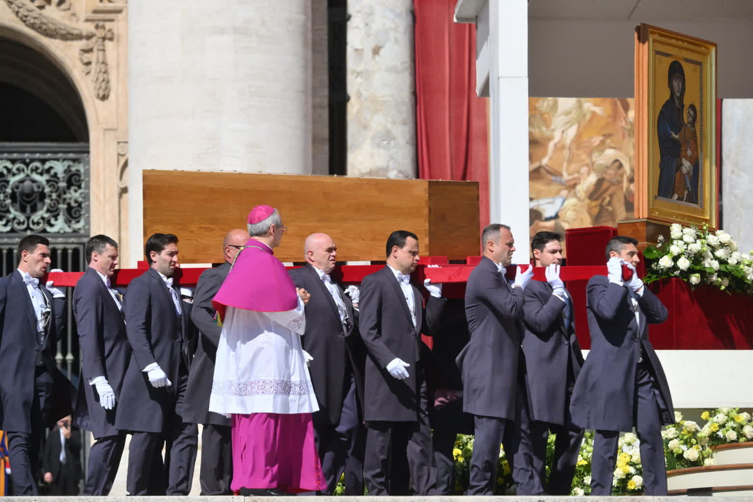 Papież Franciszek został pochowany w Bazylice Matki Bożej Większej. Wcześniej na placu świętego Piotra odbyła się msza święta pogrzebowa, skąd kondukt z ciałem papieża przejechał ulicami Rzymu.