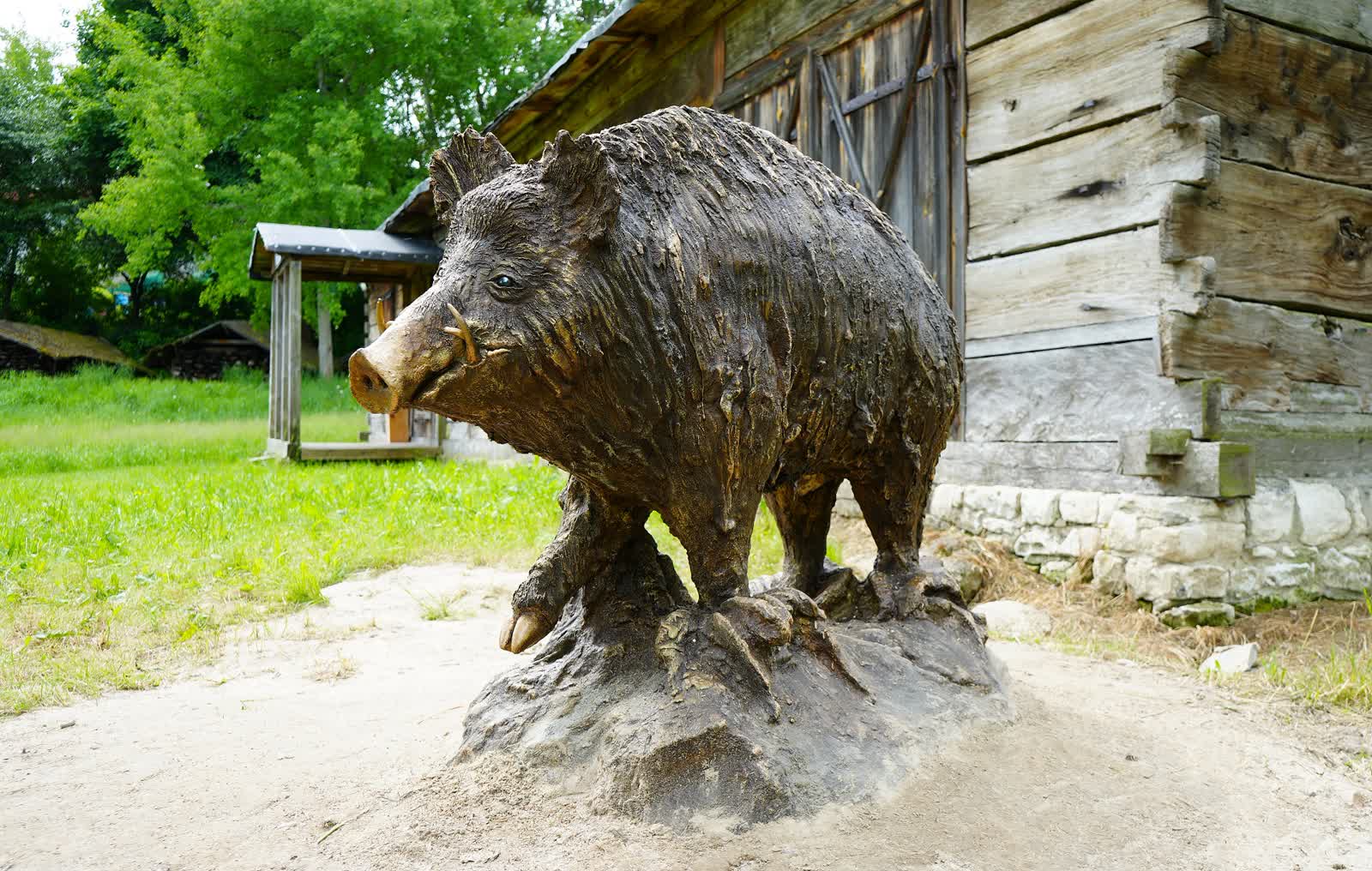 Kilka miesięcy temu stado dzików wtargnęło do lubelskiego skansenu i trzeba było zamknąć muzeum. Dla upamiętnienia tego najazdu w Muzeum Wsi Lubelskiej pojawiła się nowa atrakcja – betonowy dzik.