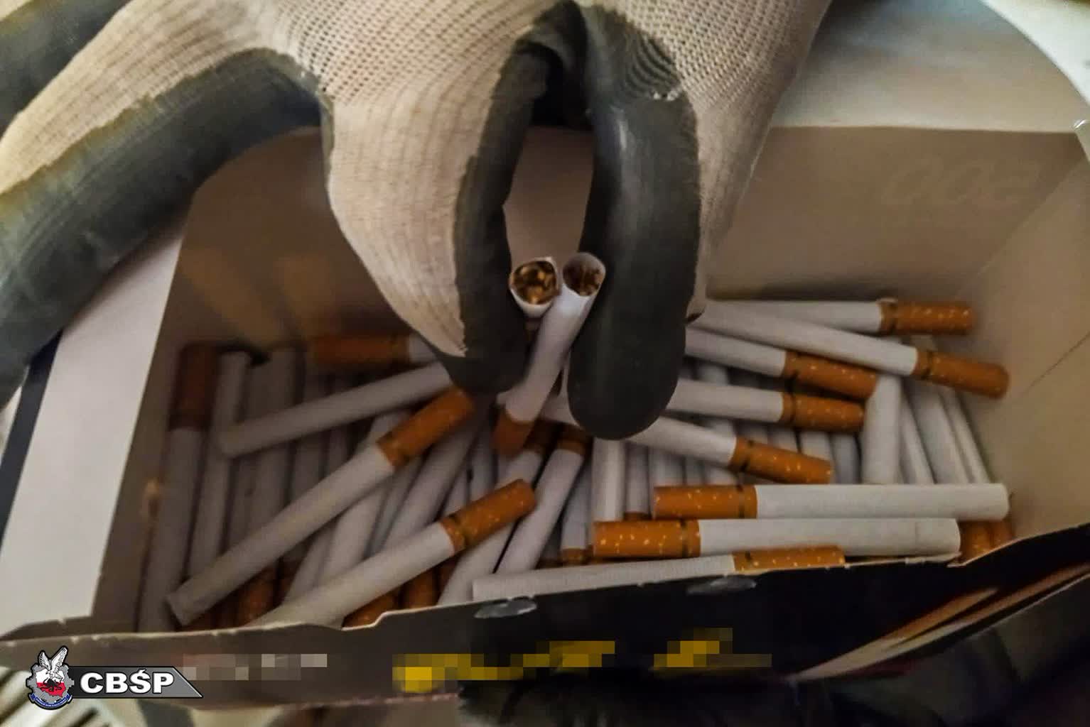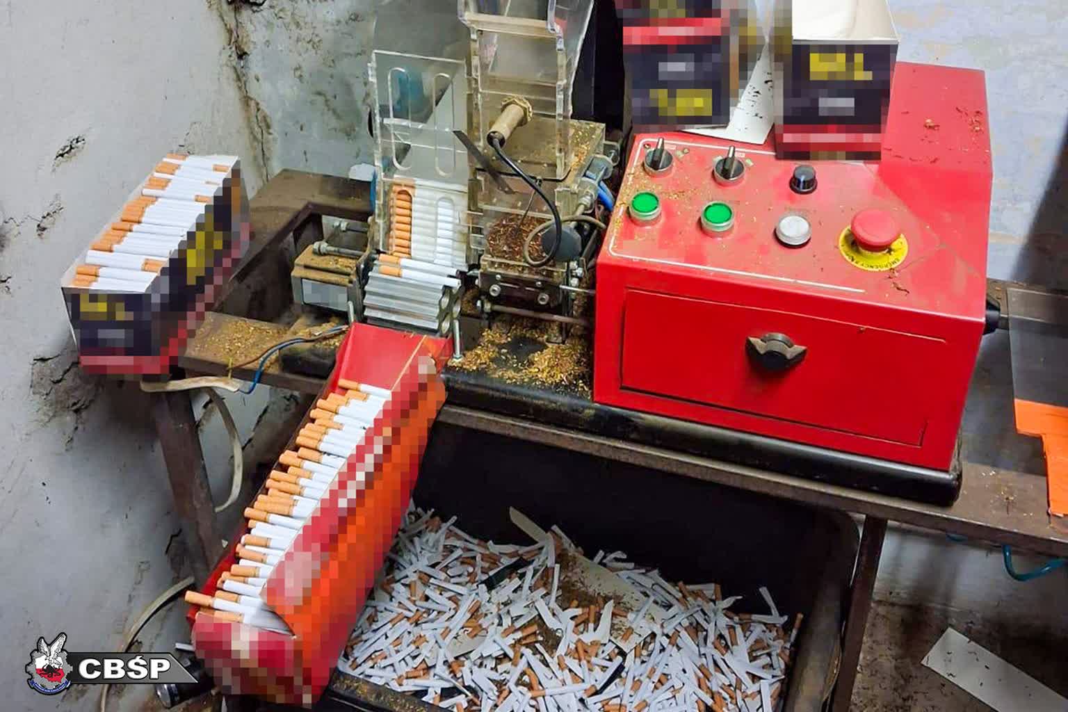 Policjanci Centralnego Biura Śledczego Policji wspólnie z funkcjonariuszami Krajowej Administracji Skarbowej przechwycili ponad 400 tysięcy sztuk papierosów bez polskich znaków akcyzy, ponad pół tony suszu tytoniowego oraz tyle samo krajanki tytoniowej. Mundurowi zabezpieczyli także specjalistyczne maszyny do cięcia i nabijania tytoniu, urządzenia do pakowania papierosów, gilzy, etykiety oraz opakowania sygnowane znakami znanych marek. Śledczy znaleźli także ponad 350 litrów wyrobów alkoholowych o stężeniu 40% i ponad 450 litrów płynu o zapachu alkoholu.