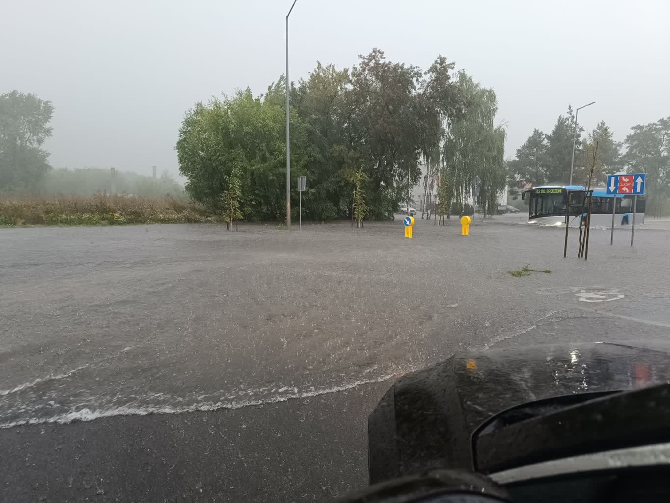 – Jak woda się podnosi? Gdzieś wyżej wjechać, nie wiem. Nie stawać pod drzewami, ale w korku to jest nieuniknione. Stanąć w bezpiecznym miejscu, jeżeli jest to możliwe.