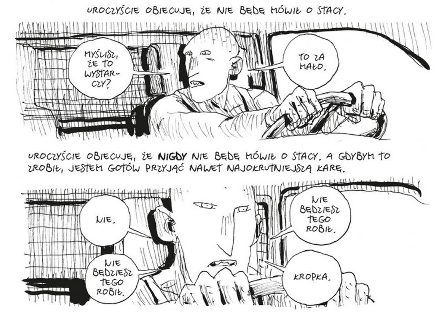 „Nigdy nie mówić o Stacy” – to zdanie co chwila pojawia się w komiksie. W Twin Peaks: Ogniu krocz ze mną David Bowie krzyczał: „Nie będziemy rozmawiać o Judy”. Czy Stacy Gipiego to Judy Lyncha? Proszę, niech ktoś napisze o tym doktorat.