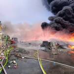 Trwa dogaszanie pożaru zakładu przetwórstwa odpadów plastikowych w Rzeczycy Ziemiańskiej. W akcji gaśniczej bierze udział 31 zastępów straży pożarnej – z jednostek z terenu całego województwa lubelskiego, w tym cysterny zapewniające ciągłość dostaw wody dla prowadzących działania gaśnicze.