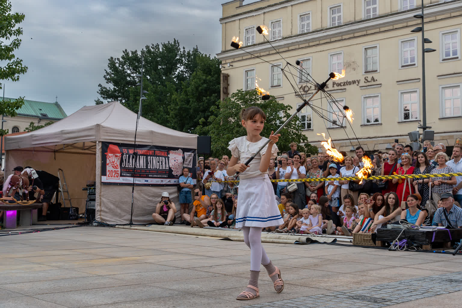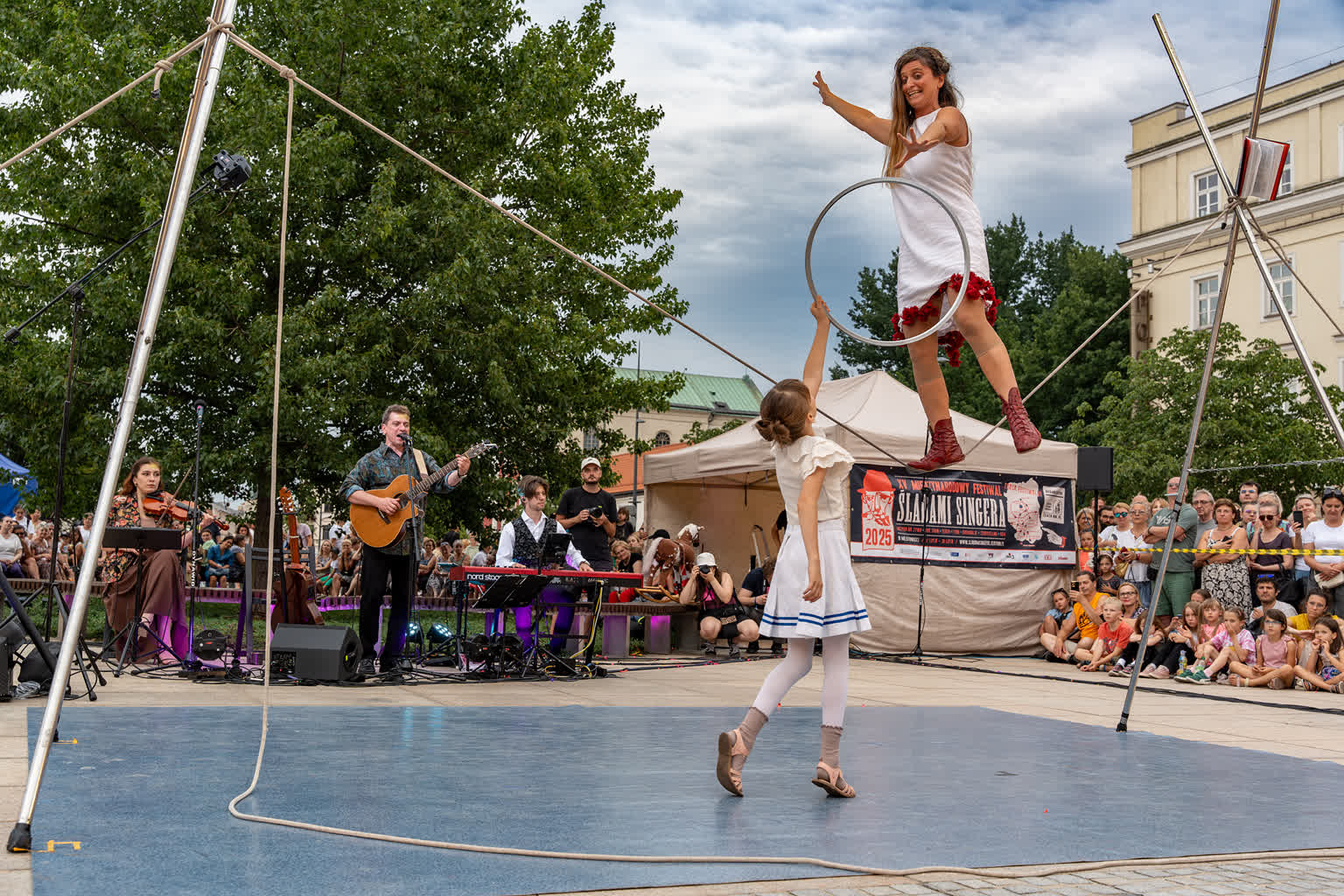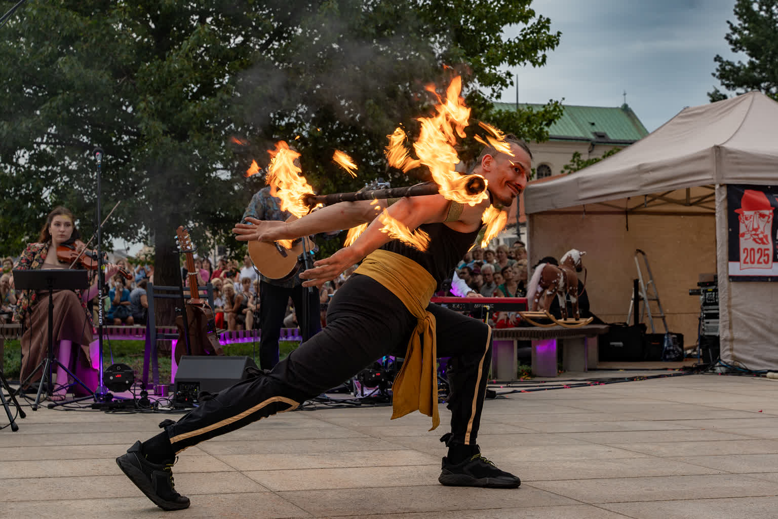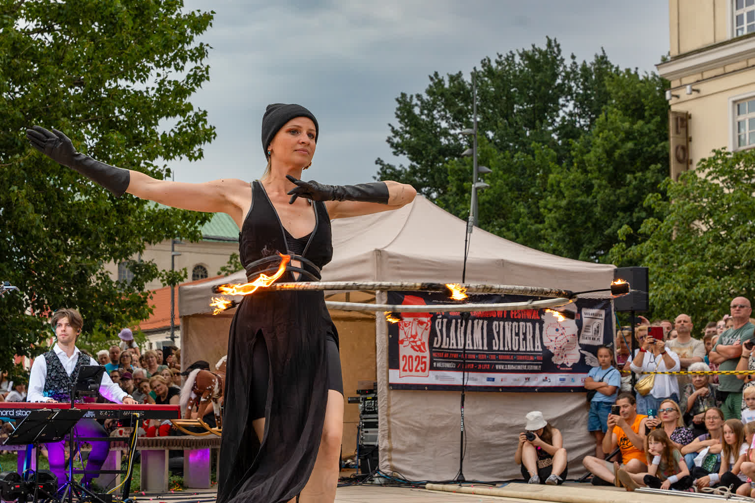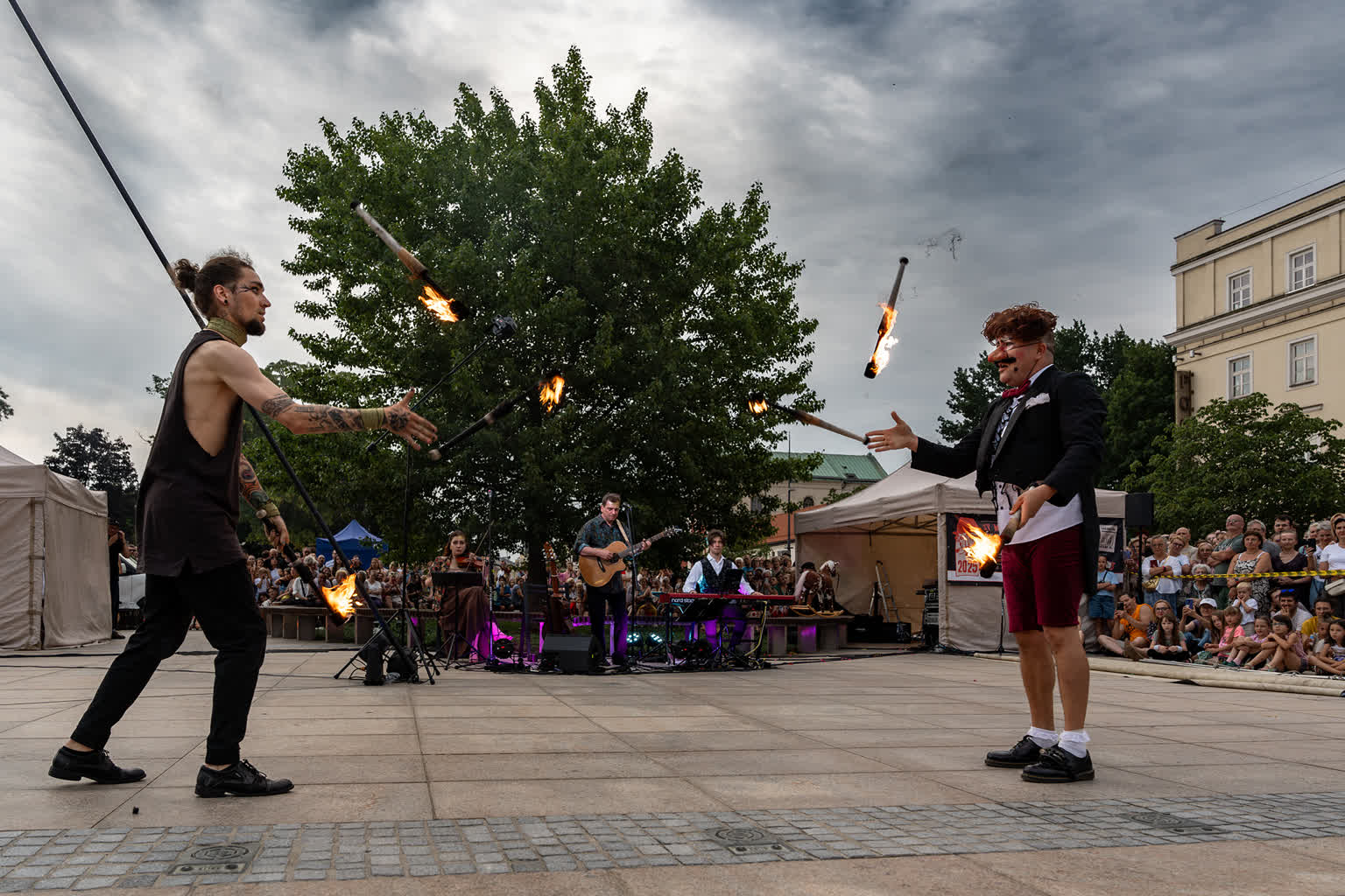 „Przyjaciele Sztukmistrza 2025” to uliczne variete z muzyką na żywo, z elementami cyrku, powietrznych akrobacji, fire show i opowieści o literackich bohaterach noblisty Izaaka Baszewisa Singera, autora „Sztukmistrza z Lublina”. Wzięli w nim udział artyści i artystki z Argentyny, Chile, Czech, Francji, Stanów Zjednoczonych i Polski.