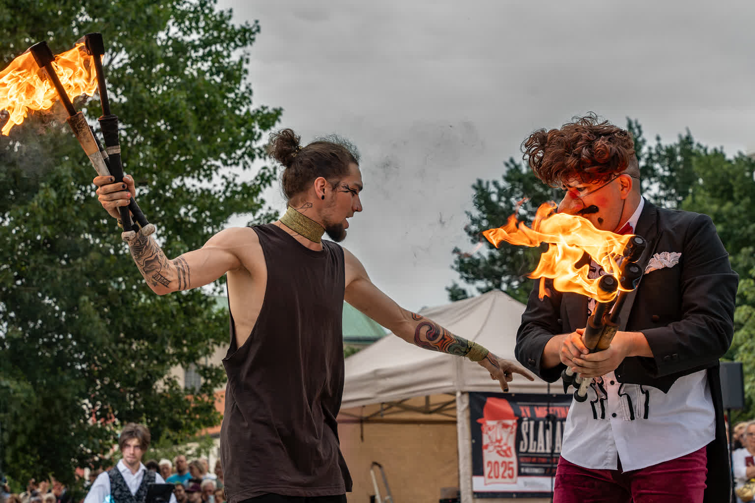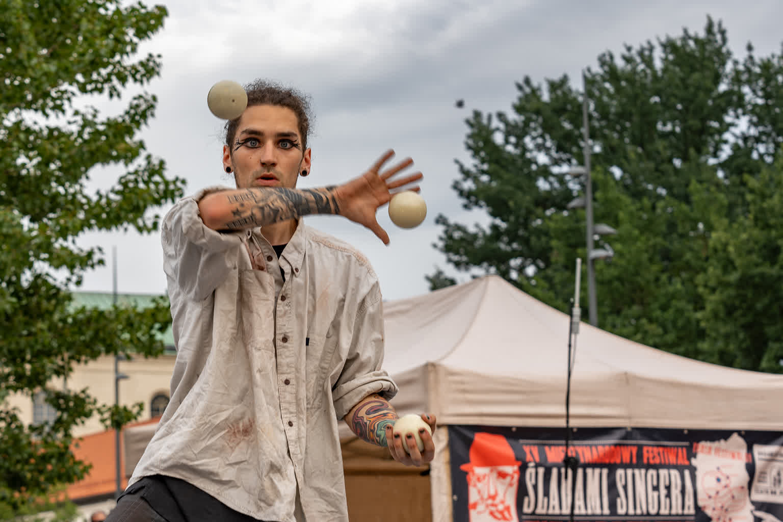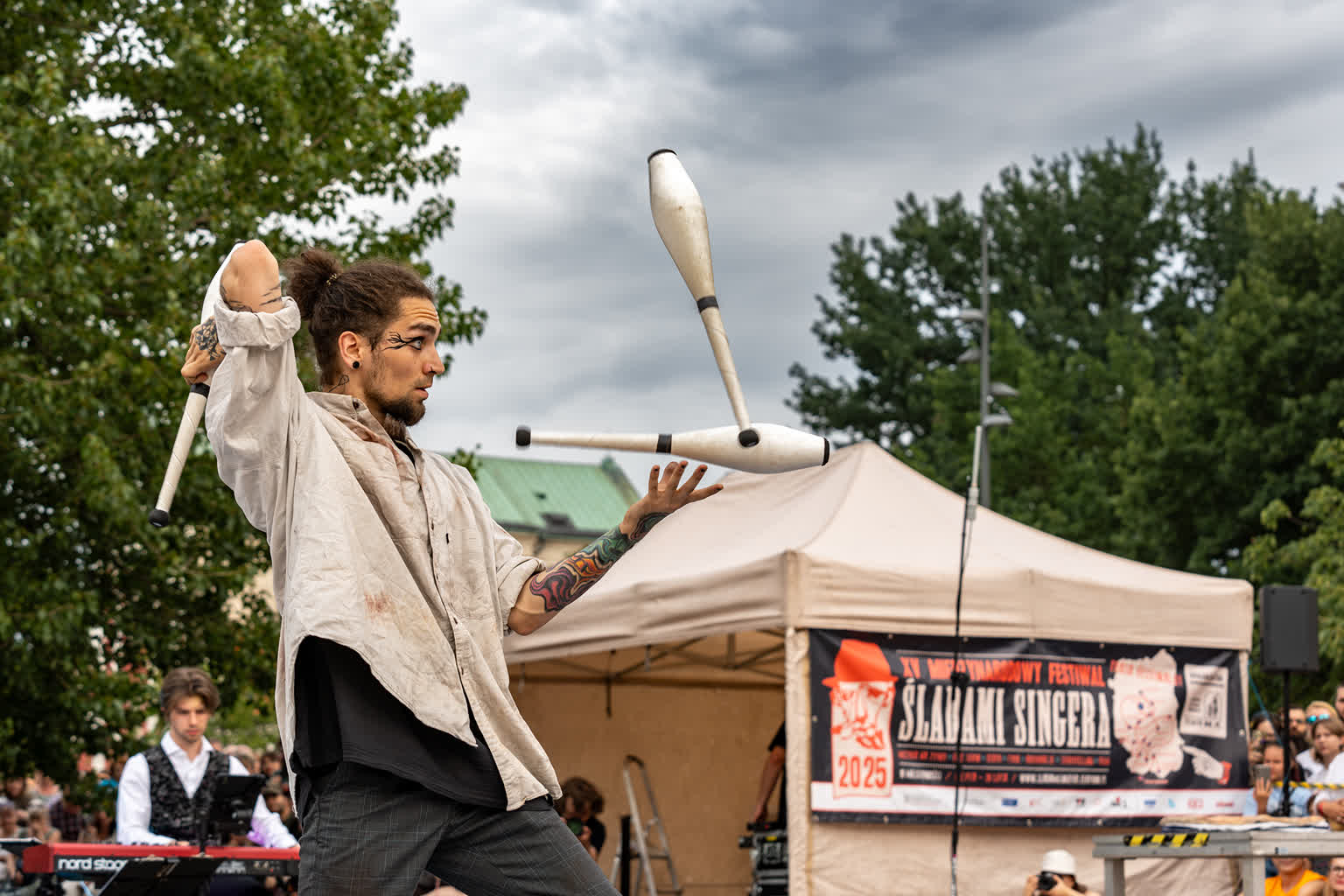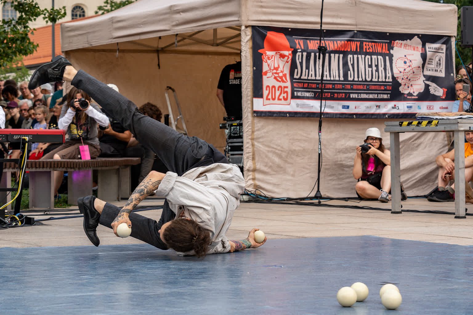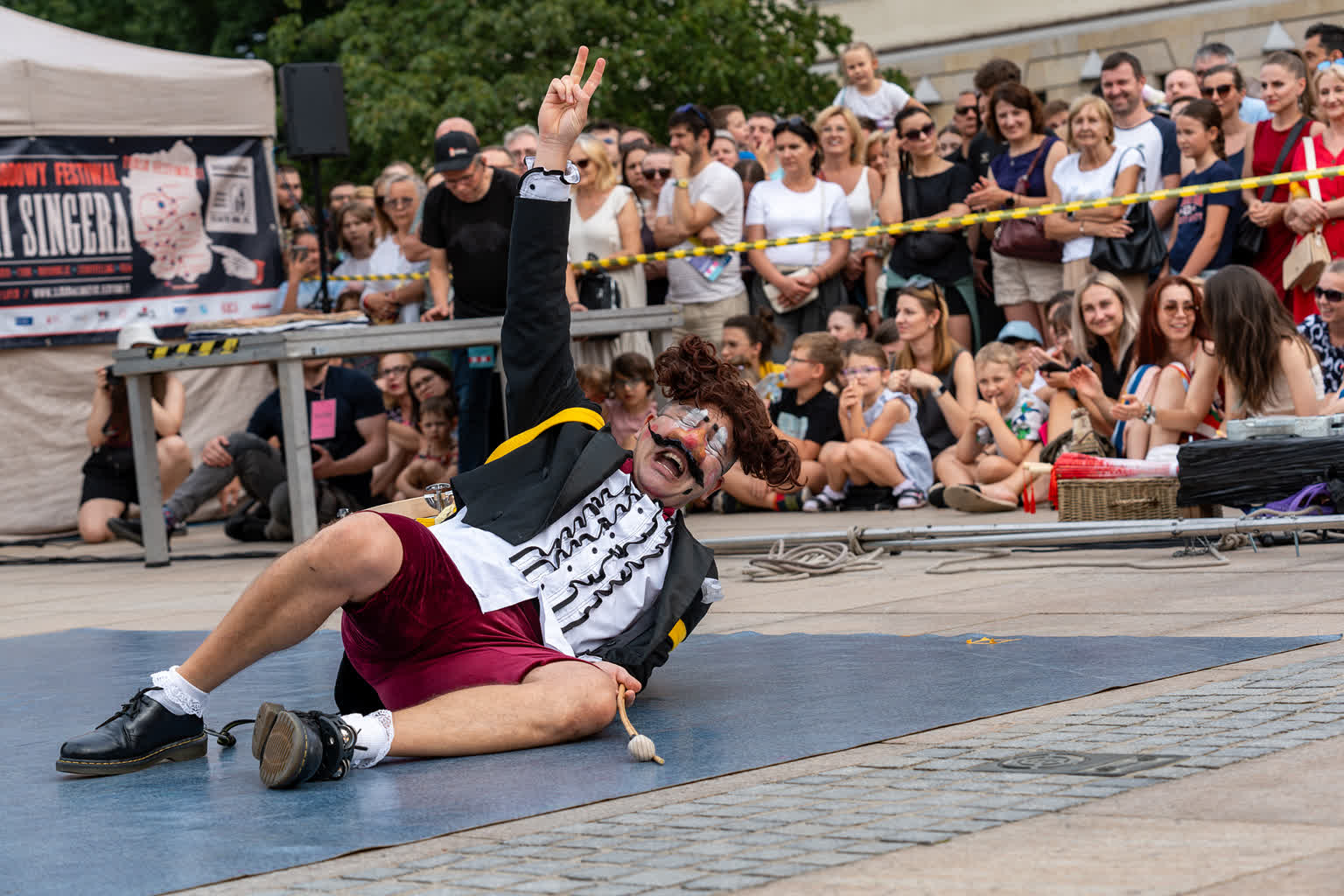„Przyjaciele Sztukmistrza 2025” to uliczne variete z muzyką na żywo, z elementami cyrku, powietrznych akrobacji, fire show i opowieści o literackich bohaterach noblisty Izaaka Baszewisa Singera, autora „Sztukmistrza z Lublina”. Wzięli w nim udział artyści i artystki z Argentyny, Chile, Czech, Francji, Stanów Zjednoczonych i Polski.