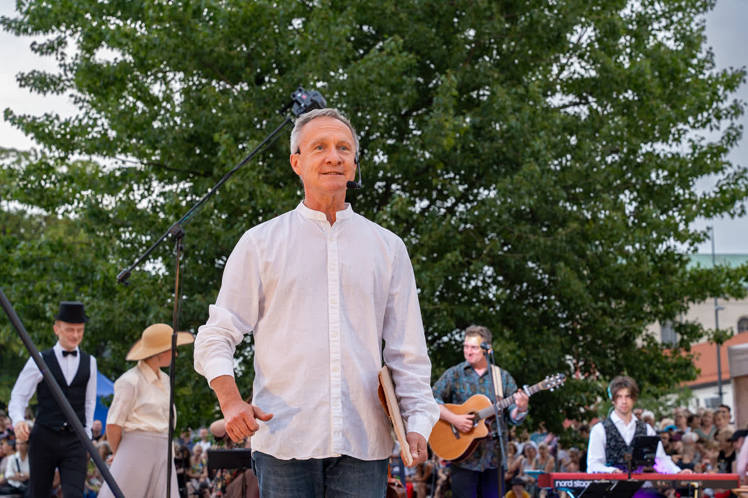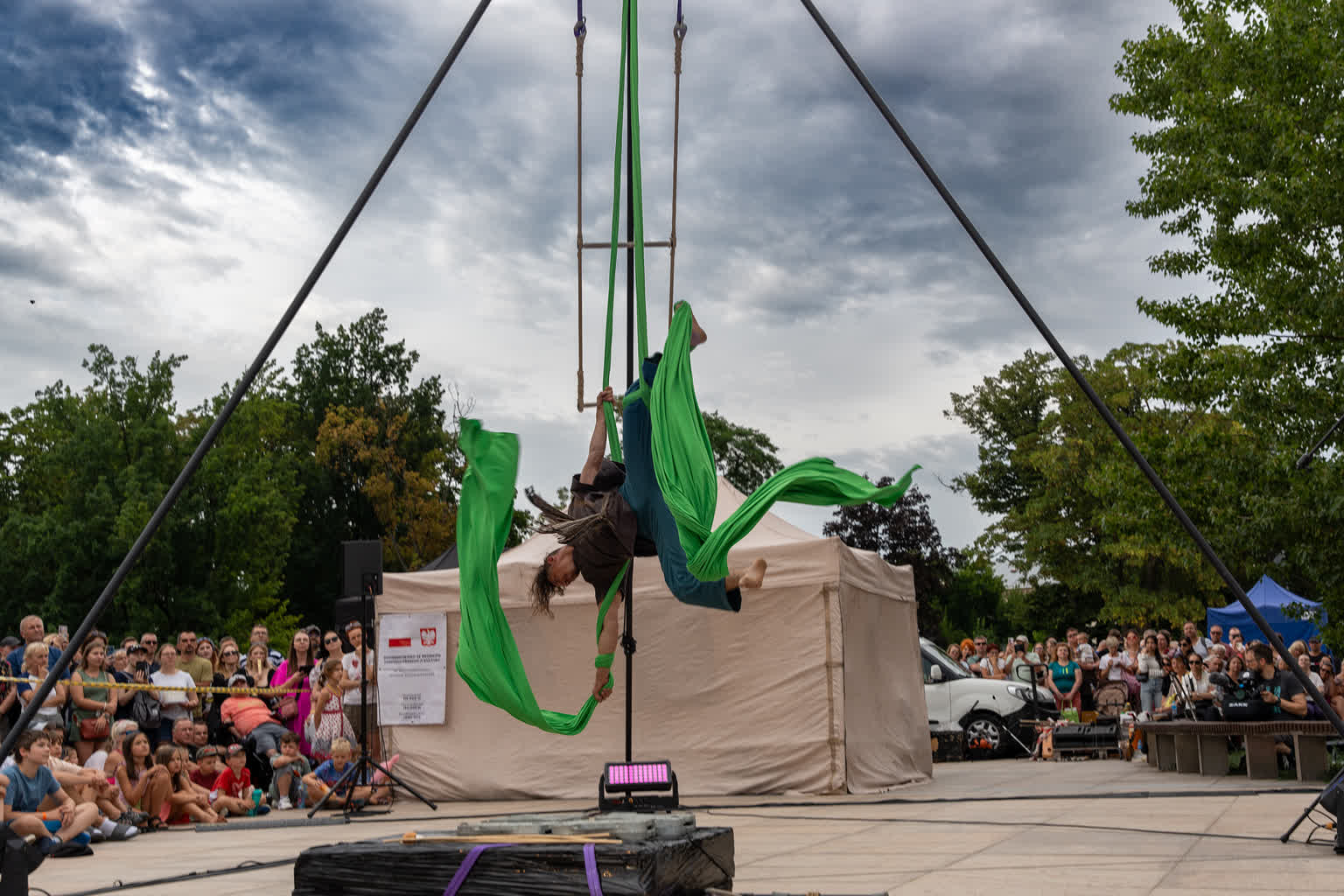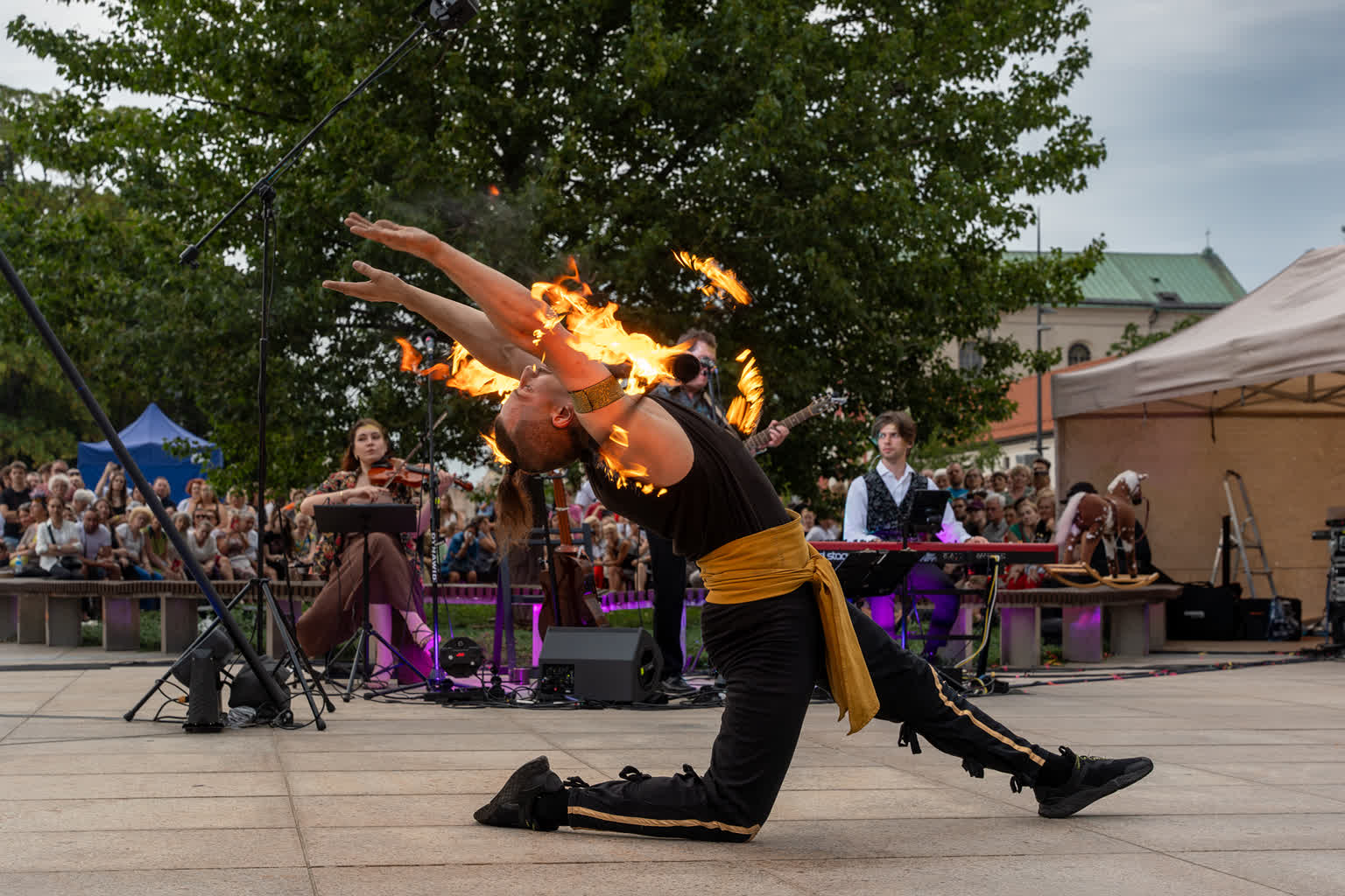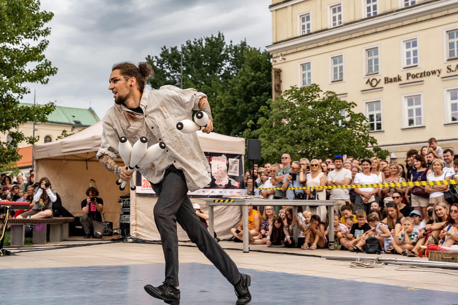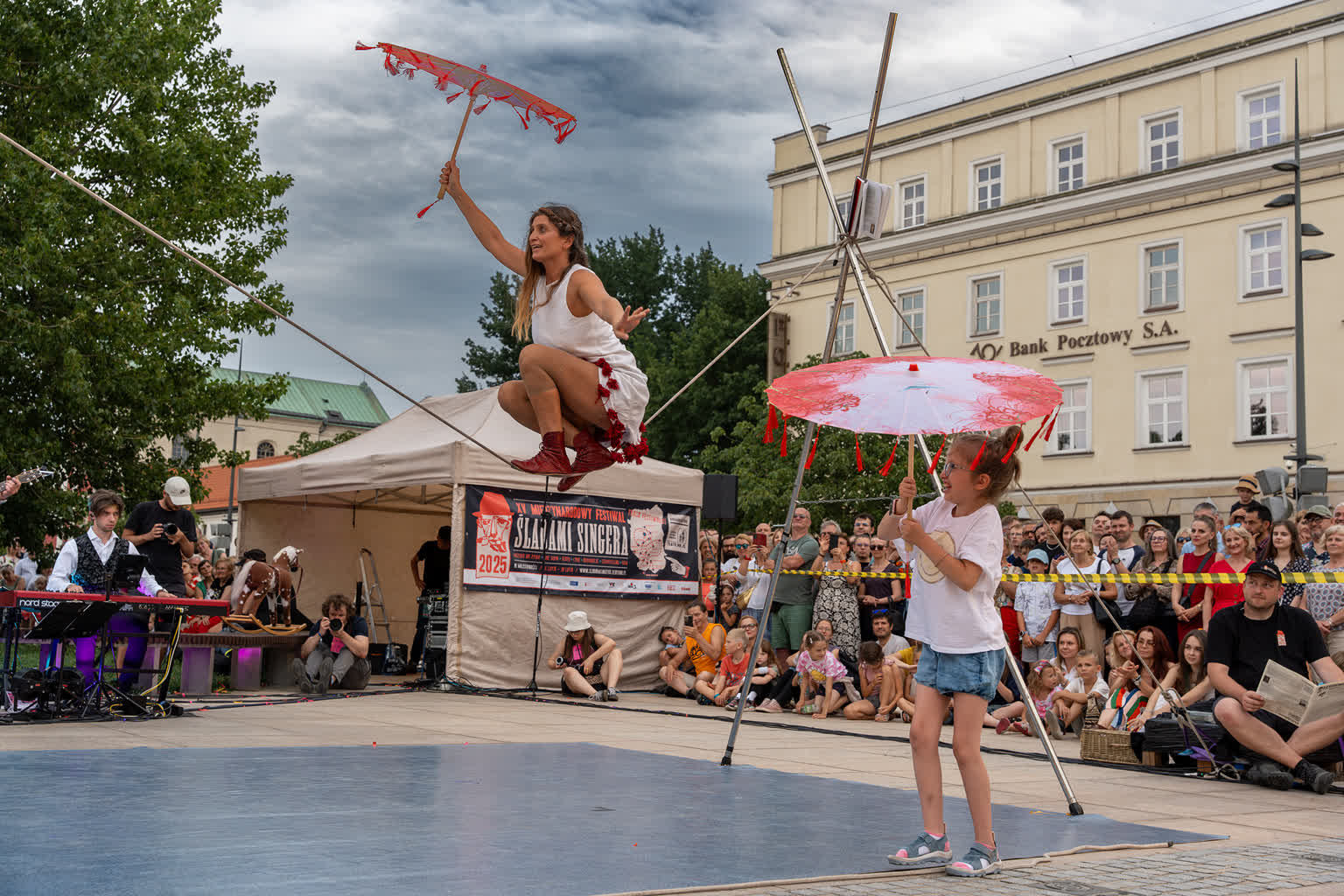 „Przyjaciele Sztukmistrza 2025” to uliczne variete z muzyką na żywo, z elementami cyrku, powietrznych akrobacji, fire show i opowieści o literackich bohaterach noblisty Izaaka Baszewisa Singera, autora „Sztukmistrza z Lublina”. Wzięli w nim udział artyści i artystki z Argentyny, Chile, Czech, Francji, Stanów Zjednoczonych i Polski.