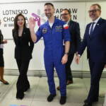 Astronauta wrócił do kraju na pokładzie rządowego samolotu. Podczas zorganizowanej na lotnisku Chopina konferencji zaczął od podziękowań za „bardzo ciepłe” powitanie. Na warszawskim lotnisku czekało na niego ponad 200 osób.