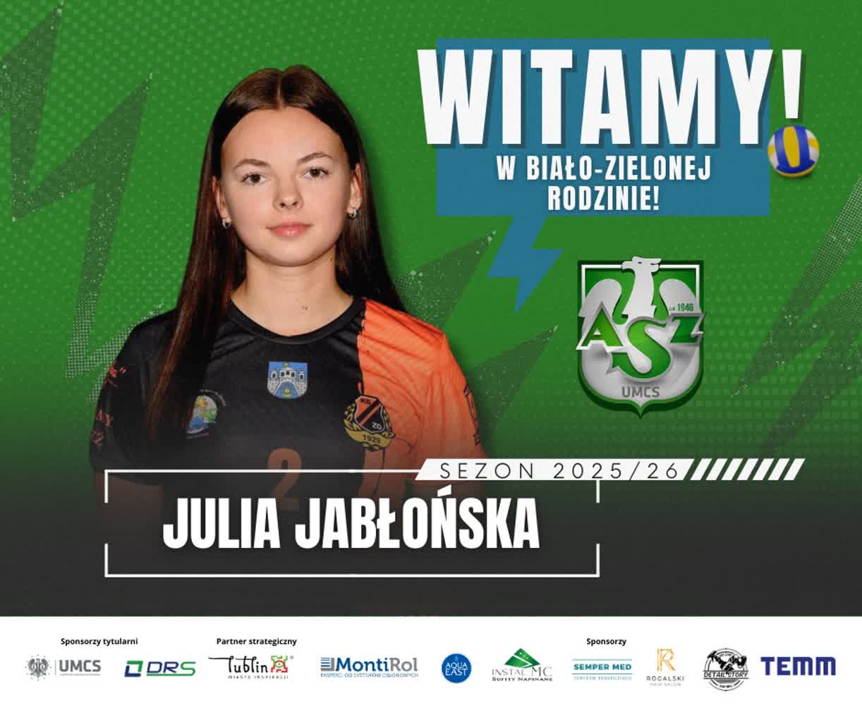 Kolejna nowa libero to 19-letnia Julia Jabłońska, która pochodzi z Ostrowca Świętokrzyskiego. W wieku 8 lat zaczęła trenować w MUKS „Jedynka” i po kilku latach kontynuowała naukę i treningi w Szkole Mistrzostwa Sportowego. Przejście do szkoły sportowej dało jej możliwość grania w II-ligowym  KSZO SMS Ostrowiec Świętokrzyski.