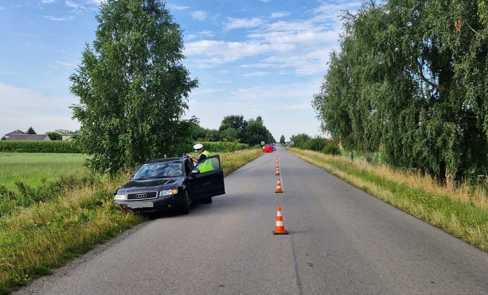 Kierujący samochodem osobowym 34-latek przed godziną 5.00 rano na prostym odcinku drogi potrącił rowerzystę. W wyniku odniesionych obrażeń rowerzysta zmarł na miejscu. Trwa ustalanie jego tożsamości. Kierujący autem był trzeźwy.