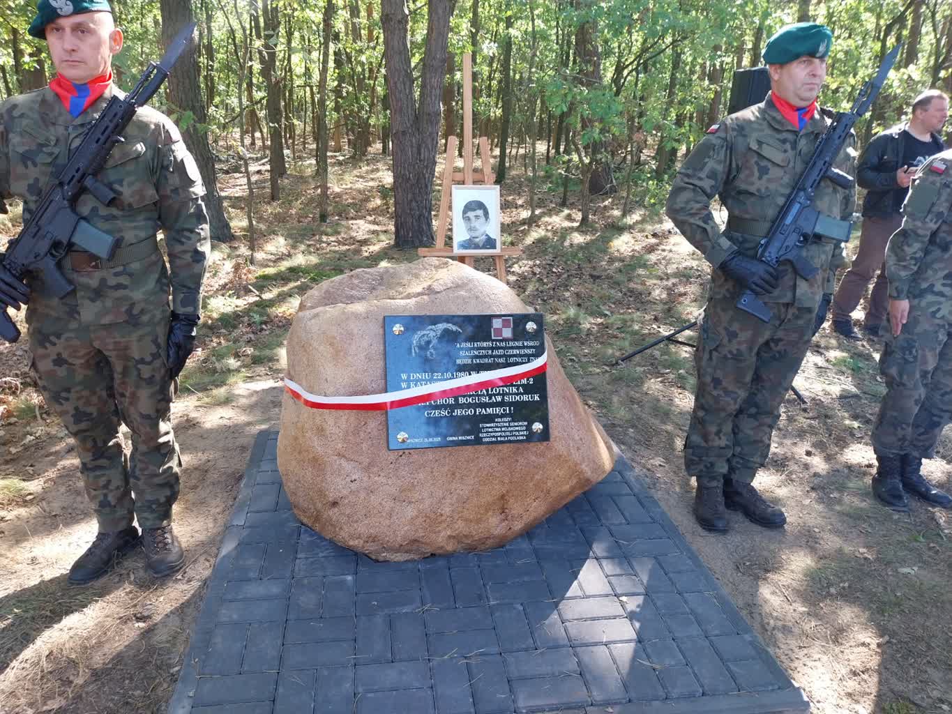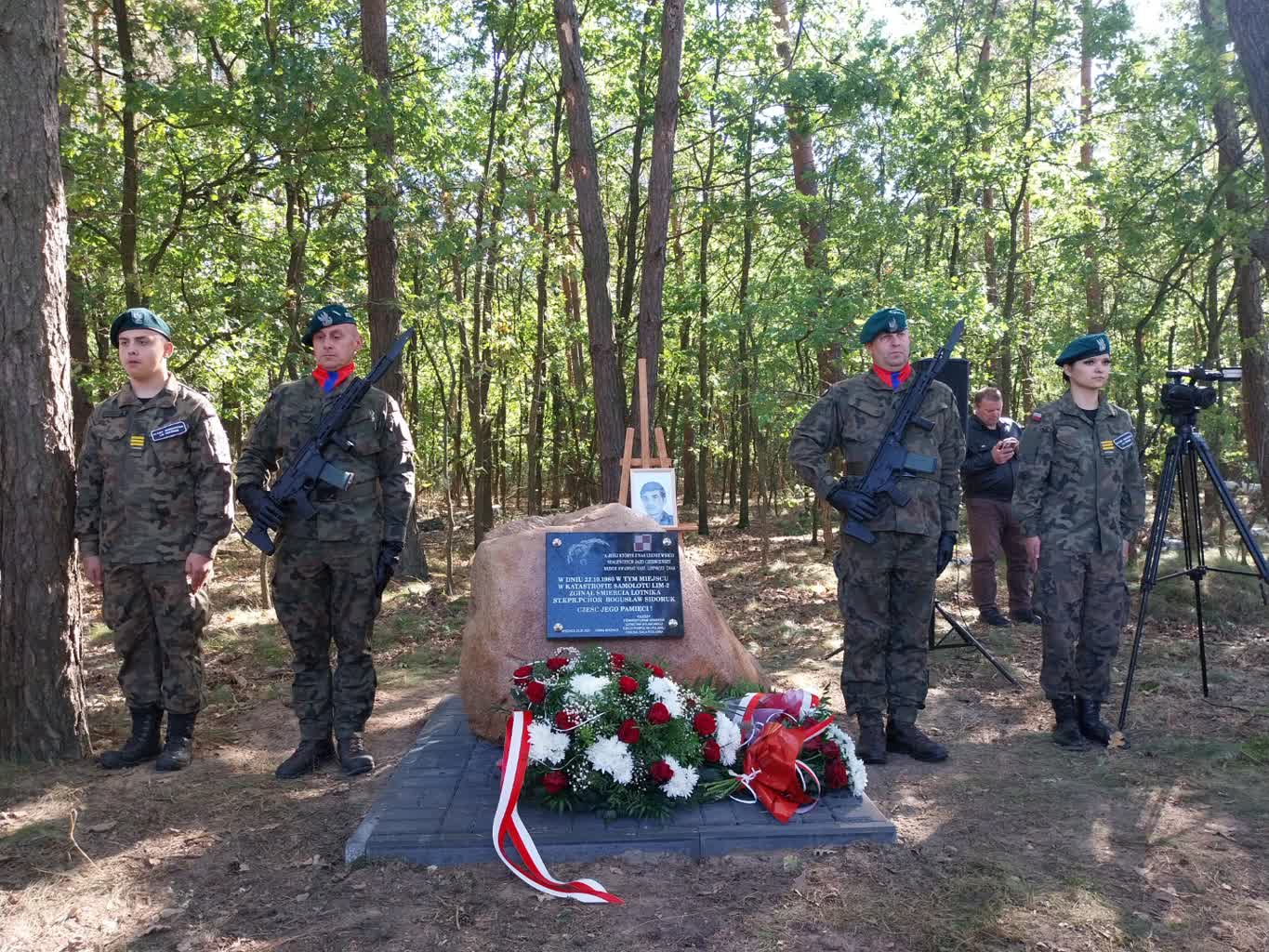 – 22 października 1980 roku nastąpiła tutaj katastrofa jednomiejscowego samolotu Lim-2. Zginął wtedy w czasie szkolenia lotniczego starszy kapral podchorąży Bogusław Sidoruk. Był uczniem pilotem szkoły dęblińskiej – opowiada major pilot Mirosław Joński, prezes Stowarzyszenia Seniorów Lotnictwa Wojskowego RP Oddział Biała Podlaska. – Były wtedy trudne warunki atmosferyczne, czyli pełne pokrycie chmur. W pewnym momencie podchorąży Sidoruk wszedł w chmury i po komendzie prowadzącego: „Wyprowadź z chmur”, już z nich nie wyleciał. Podał tylko informację: „264 korkociąg”. To znaczy, że stracił przestrzenne położenie i manewrowość samolotu. Niestety wprowadzony w korkociąg samolot leci z dużą prędkością i szybkimi obrotami wokół własnej osi w kierunku ziemi. Na wysokości 200 metrów podchorążemu udało się katapultować, jednak wtedy ta wysokość nie gwarantowała możliwości przeżycia.