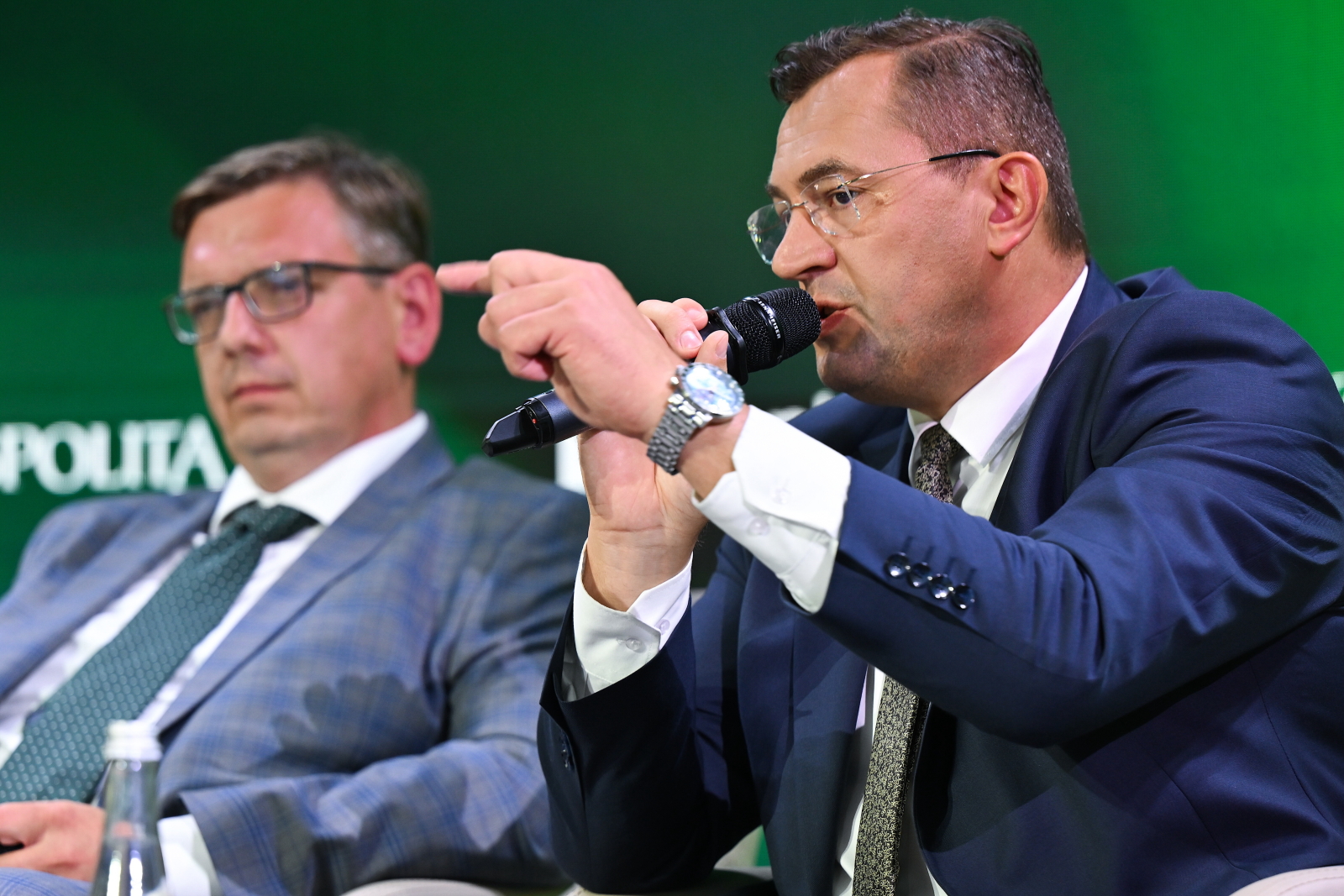 Karpacz, 03.09.2025. Od lewej: pe³nomocnik MRiRW ds. ¯u³aw Wiœlanych Pawe³ Cywiñski i minister rolnictwa i rozwoju wsi Stefan Krajewski podczas debaty "Rolnictwo jako filar strategicznej odpornoœci i przewagi konkurencyjnej Polski" w trakcie XXXIV Forum Ekonomicznego w Hotelu Go³êbiewski w Karpaczu, 3 bm. Tegoroczna edycja wydarzenia odbywa siê pod has³em „Czas transformacji - jaka bêdzie Europa przysz³oœci?”. (aldg) PAP/Maciej Kulczyñski