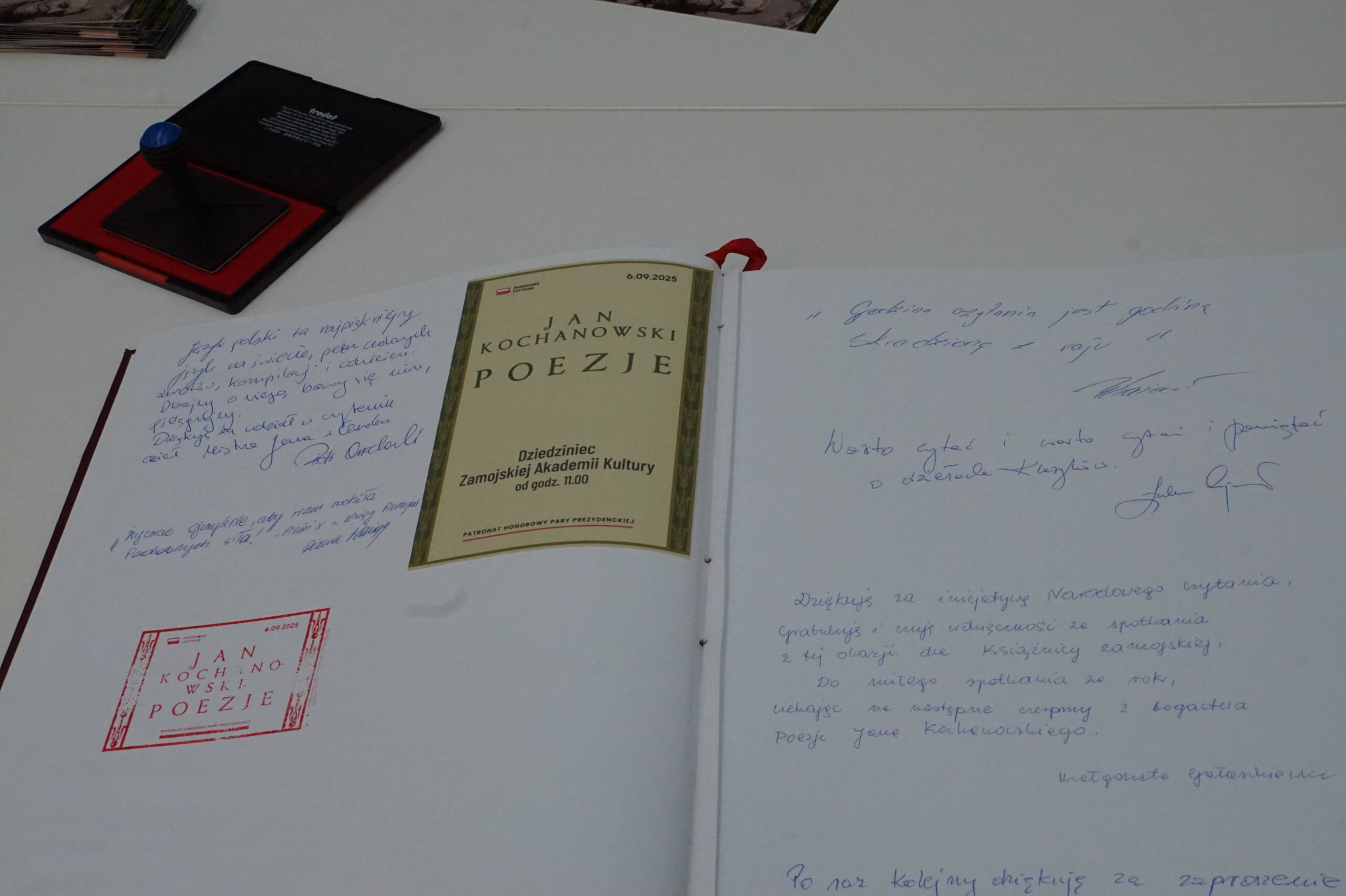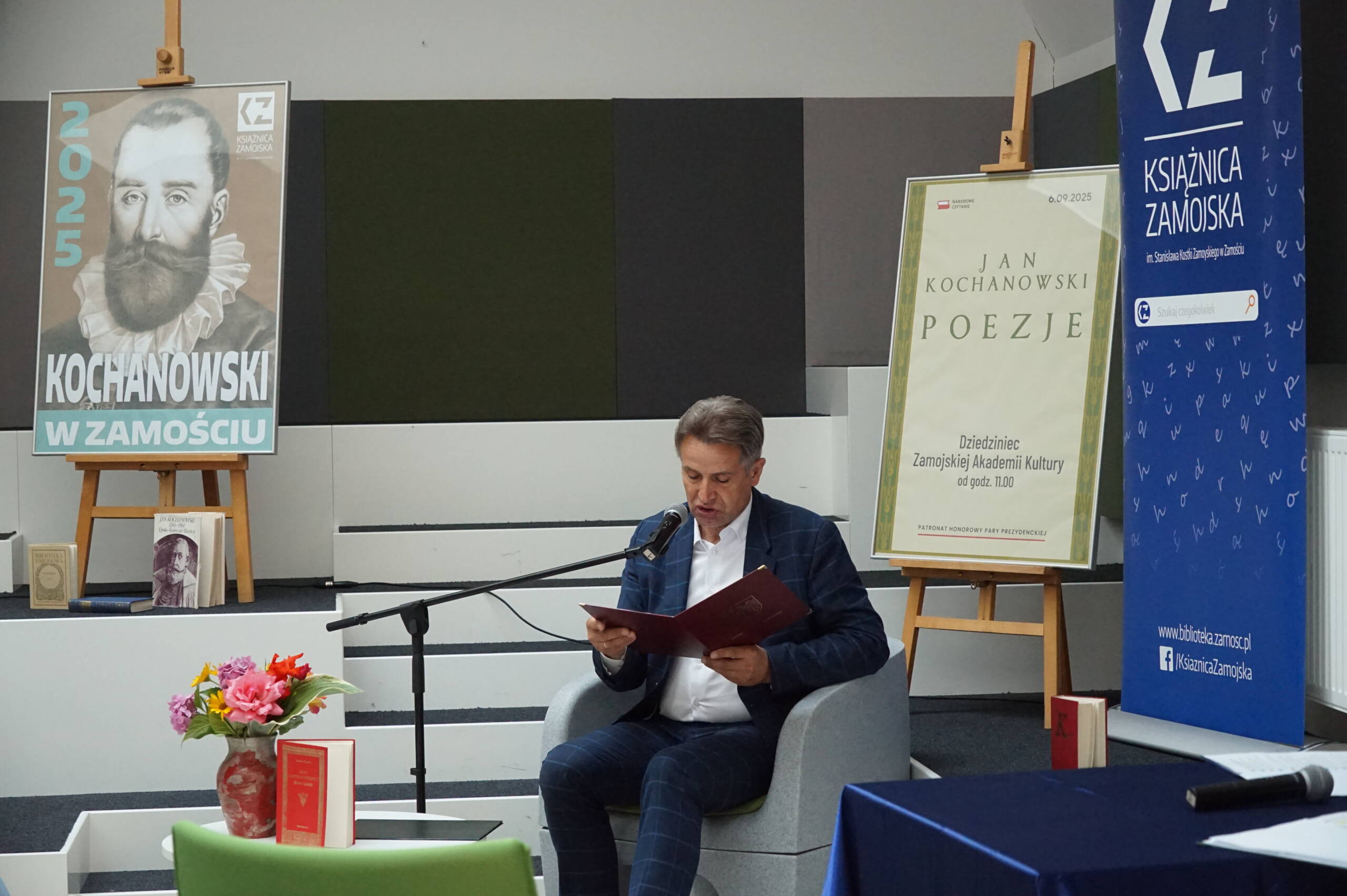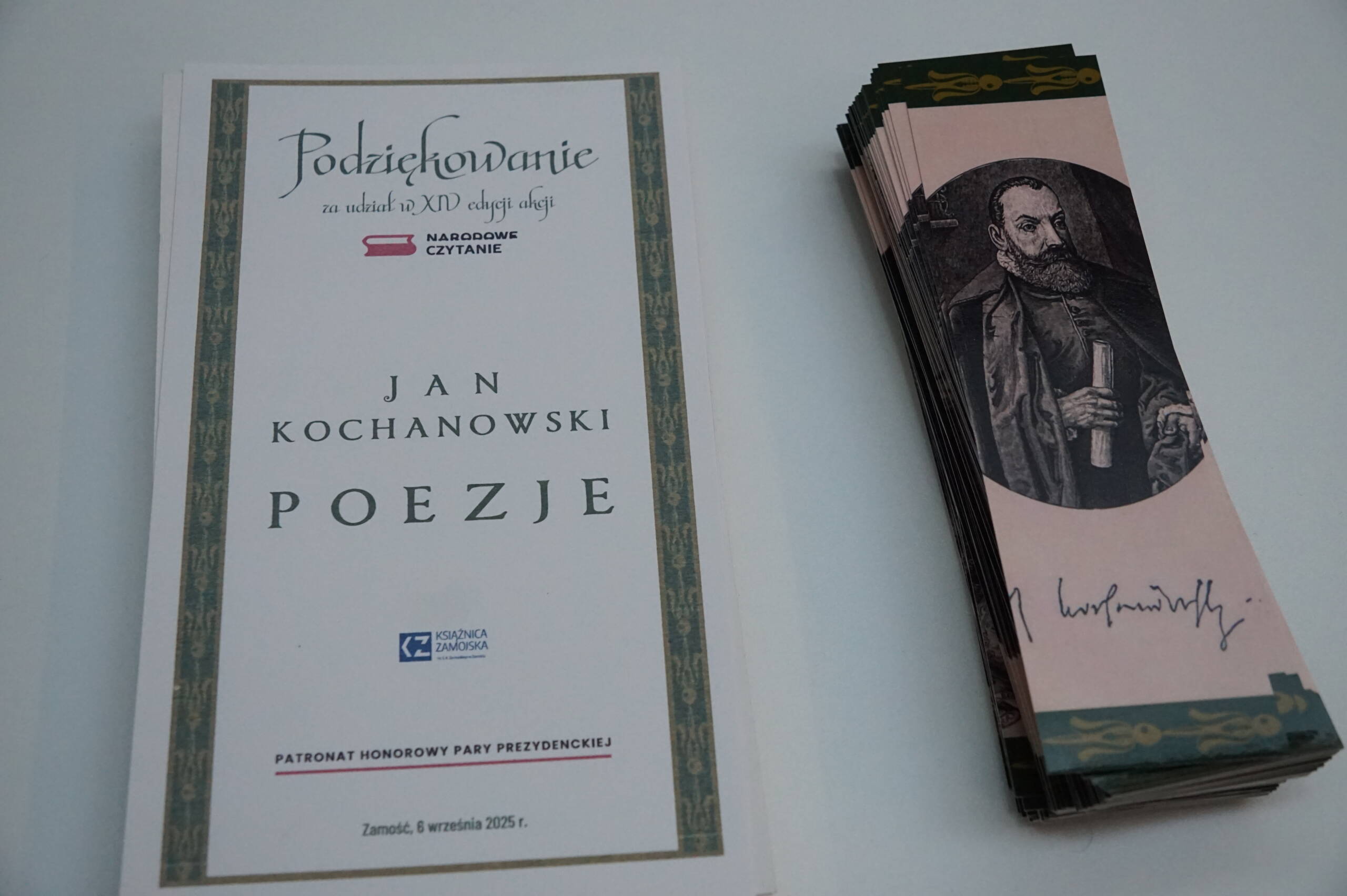 Poezje Jana Kochanowskiego to lektura 14. edycji Narodowego Czytania. Jak co roku w czytaniu z Książnicą Zamojską wzięli udział samorządowcy, przedstawiciele kultury i pracownicy oświaty oraz czytelnicy i przyjaciele biblioteki. Każdy uczestnik otrzymał pamiątkową zakładkę, była też możliwość odciśnięcia pamiątkowego stempla na przyniesionych egzemplarzach z twórczością Mistrza z Czarnolasu.