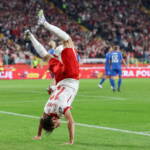Chorzów, 07.09.2025. Polak Jakub Kamiñski cieszy siê z bramki strzelonej na 3:0 w meczu eliminacyjnym pi³karskich mistrzostw wiata z Finlandi¹, 7 bm. w Chorzowie. (js) PAP/Micha³ Meissner