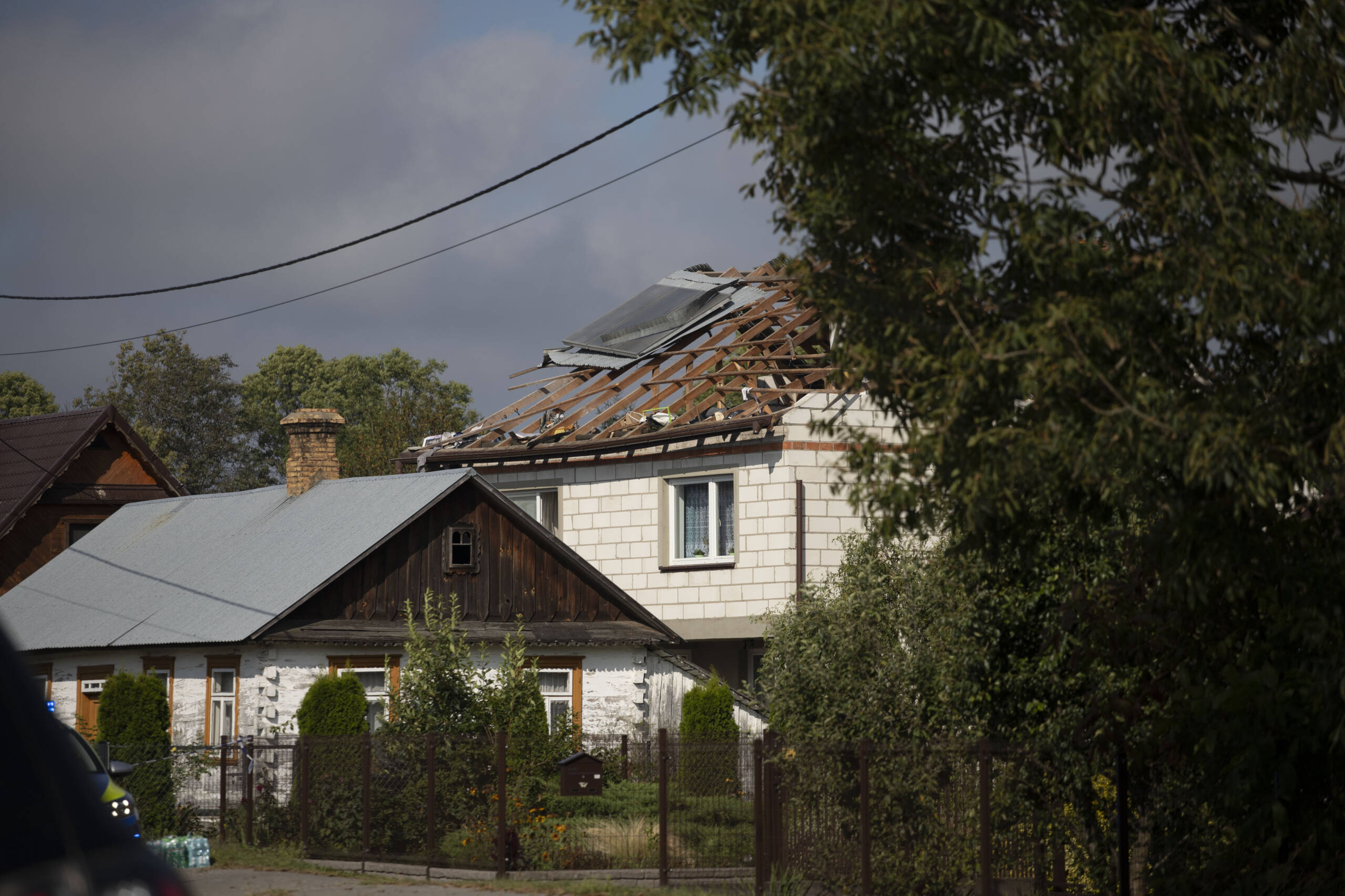 – Służby działają już od 6.30, bo najprawdopodobniej to zajście miało miejsce między 6.00 a 7.00 – relacjonuje starosta włodawski Mariusz Zańko. – Ludzie słyszeli wybuchy, widzieli polskie myśliwce. Z dużym prawdopodobieństwem szczątki drona spadły na budynek mieszkalny. Są szkody w mieniu. Budynek mieszkalny na terenie powiatu włodawskiego w miejscowości Wyryki uległ dosyć dużemu zniszczeniu. Wiemy, że sytuacja jest dosyć napięta, mieszkańcy są bardzo zaniepokojeni. wysłaliśmy tu swoich psychologów z Powiatowego Centrum Pomocy Rodzinie. Rodzina chciałaby wrócić, ale ten budynek po pierwsze będzie sprawdzany przez służby, przez wojsko, przez policję. Po drugie nie ma decyzji, bo inspektor nadzoru budowlanego nie może wejść do środka i ocenić, czy ten budynek będzie się nadawał do zamieszkania, czy do rozbiórki. Ale straty są niestety duże, bo nie tylko dach, ale także i część stropu pomiędzy strychem a drugim piętrem ucierpiała.
