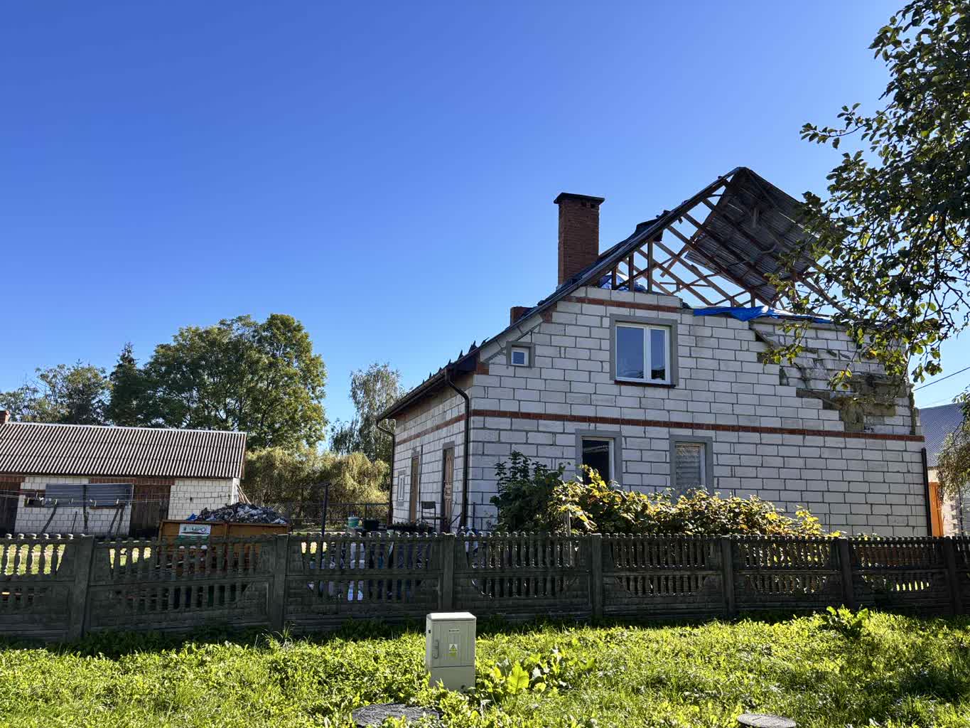 – To jest na pewno straszne, ale mamy przykład jak w dzisiejszej dobie dezinformacja może zadziałać na szkodę obywateli, poszkodowanych, bo to ich najbardziej dotknęła ta sytuacja – opowiada wójt. – Dotknęła też wszystkich mieszkańców naszej gminy. Jak wiemy, niejednokrotnie to gmina Wyryki była wymieniana jako miejsce incydentu. Z takimi dezinformacjami też się spotykałem i od razu robiliśmy komunikaty, przekazywaliśmy bezpośrednio podczas rozmów, tworzyliśmy posty na naszych mediach społecznościowych, które mówiły o tym, żeby nie rozmawiać z przypadkowymi nieznajomymi, osobami, które nakręcają te osoby, później prawdopodobnie modyfikują te filmy i wrzucają to do sieci. Cały czas instruowałem wszystkich mieszkańców, aby sprawdzać legalność tego z kim się rozmawia poprzez sprawdzenie legitymacji dziennikarskiej, poprzez weryfikację. Ewentualnie jeżeli nie jesteśmy pewni, to nie rozmawiać, nie udzielać informacji. Mieliśmy takie przypadki, że nieznane osoby pojawiły się od razu na terenie naszej gminy. Nagrały różnego rodzaju filmy. Później zostały one prawdopodobnie przerobione przez programy, chociażby sztucznej inteligencji, które potrafią zmodyfikować wszelkiego rodzaju filmy, głos, to zostało wpuszczone do sieci, a jeszcze powielane przez osoby, które nie sprawdzały legalności pochodzenia treści i przede wszystkim źródła tego co zostało zamieszczone. Ta dezinformacja rozniosła się na tyle, że musieliśmy z tym walczyć. Walczymy do tej pory. Staramy się rozmawiać z mediami, staramy się wszystkim przedstawiać tę sytuację, że to poranek 10 września uszkodził ten budynek. On był wcześniej nienaruszony. Uszkodzenia, które możemy zaobserwować, jeżeli ktoś ma pojęcie co mogłaby spowodować burza albo huragan, to widzieliśmy zupełnie inny obraz zniszczeń tego obiektu – dodaje.