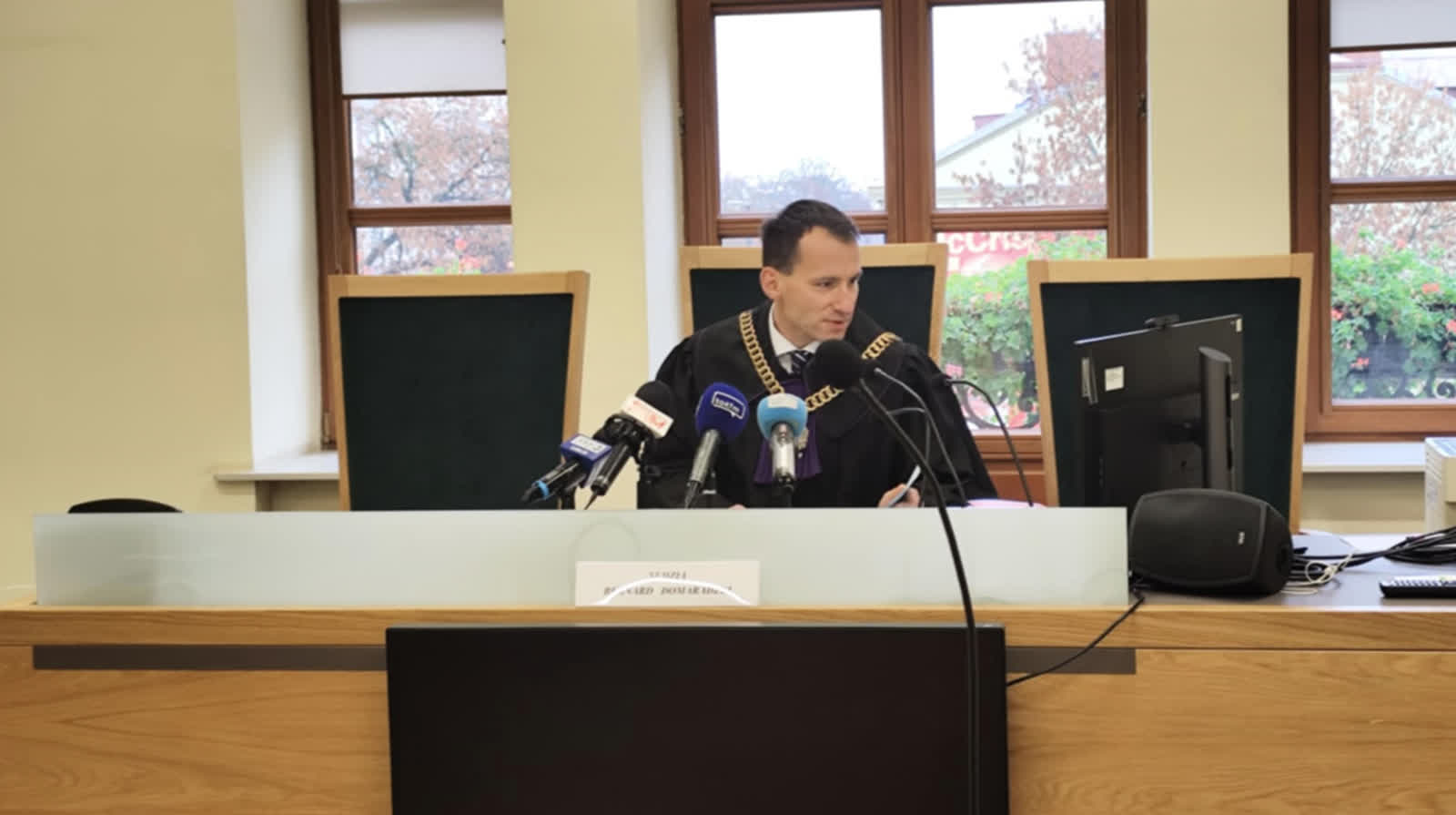 – Nie istnieją żadne przepisy, formy prawa powszechnie obowiązującego ani regulamin urzędu, które regulowałyby kwestie umieszczania krzyża, czy innych symboli religijnych na ścianach urzędów państwowych w Polsce – argumentował wyrok sędzia Sądu Rejonowego, Bernard Domaradzki. – Konstytucja w tym zakresie jasno wskazuje co jest symbolem narodowym. Jest nim godło Rzeczpospolitej, którego jest wizerunek orła białego w koronie w czerwonym polu, a barwami naszymi są kolory biały i czerwony. Konstytucja nasza nie wymienia krzyża, a to co Państwo mówiliście na ten temat jest wasza interpretacją dziejów Polski, dla istoty tego krzyża, niepodległości, bytu państwa polskiego, tożsamości kultury, ale to nie jest podstawą zarzutu kierowanego do oskarżonego.