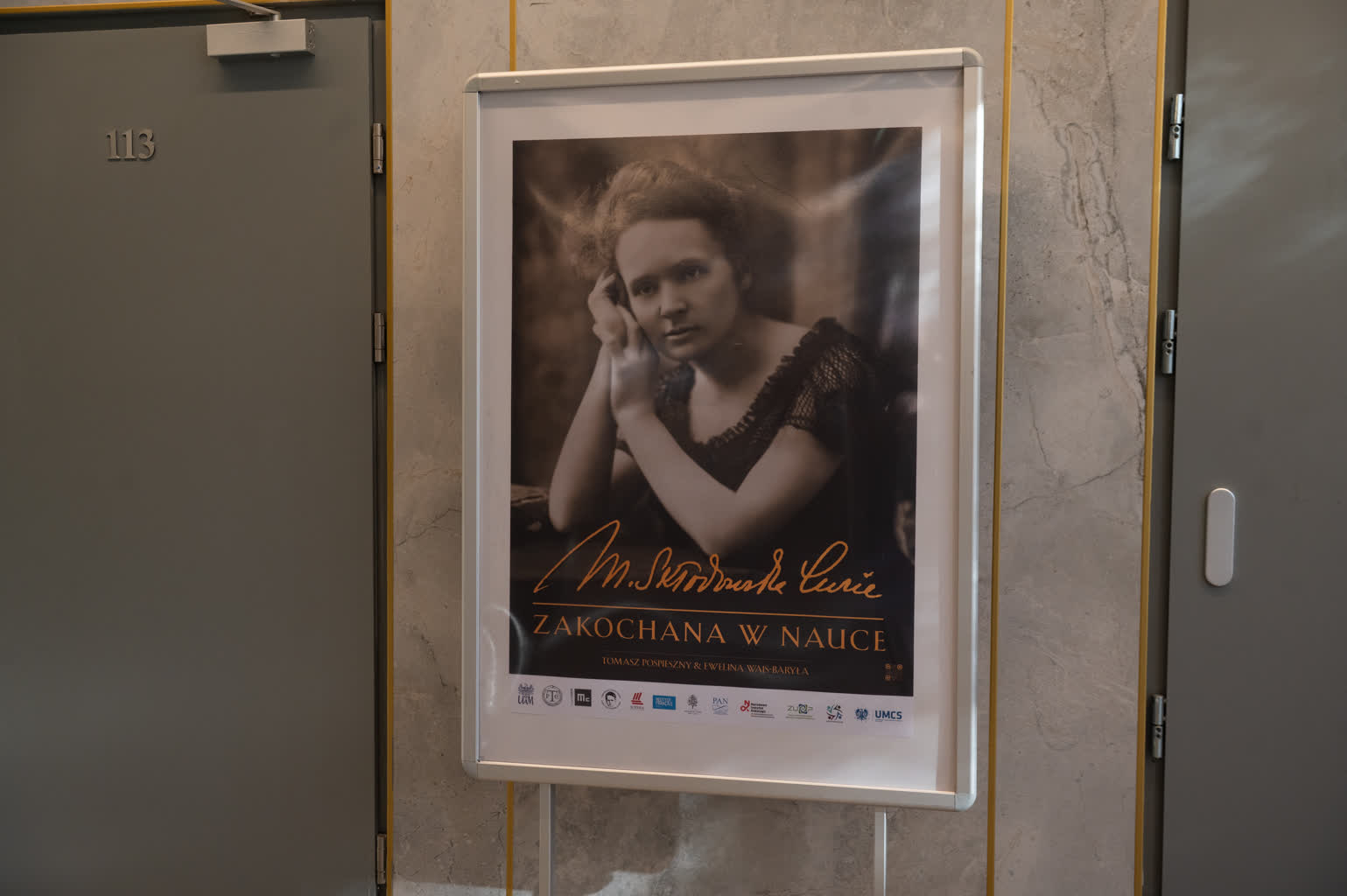 Wystawa „Maria Skłodowska-Curie. Zakochana w nauce” w najbliższy dniach będzie dostępna przy dużej auli na Wydziale Chemii UMCS.