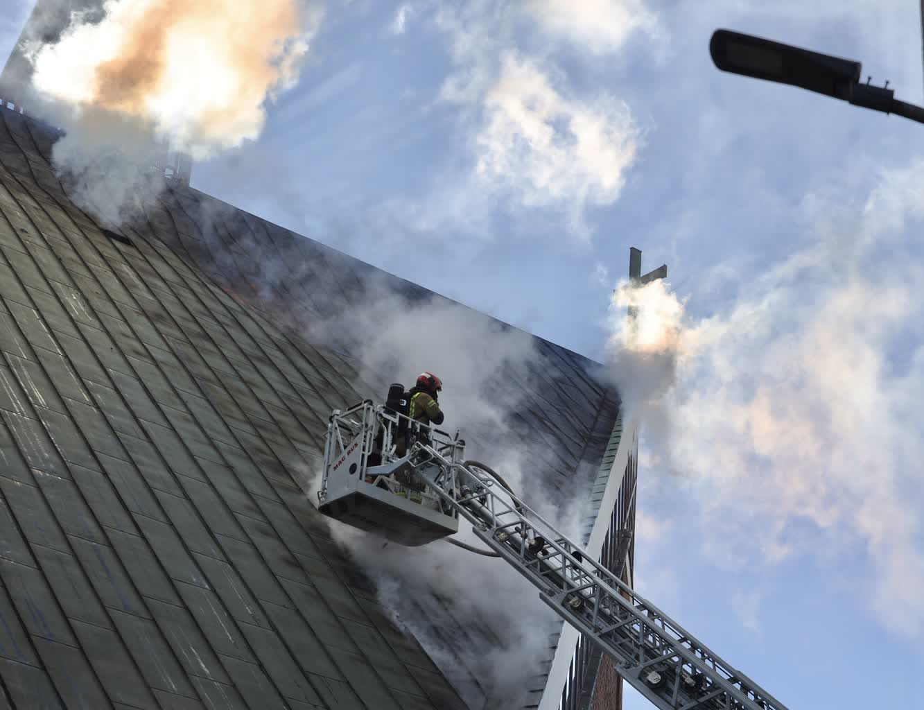 22 zastępy i 75 strażaków walczy z pożarem poddasza i dachu kościoła pod wezwaniem Najświętszego Serca Jezusowego w Lublinie. Akcje gaśniczą utrudnia duże zadymienie, wysokość i mróz. Z wnętrza kościoła ewakuowano część wyposażenia.