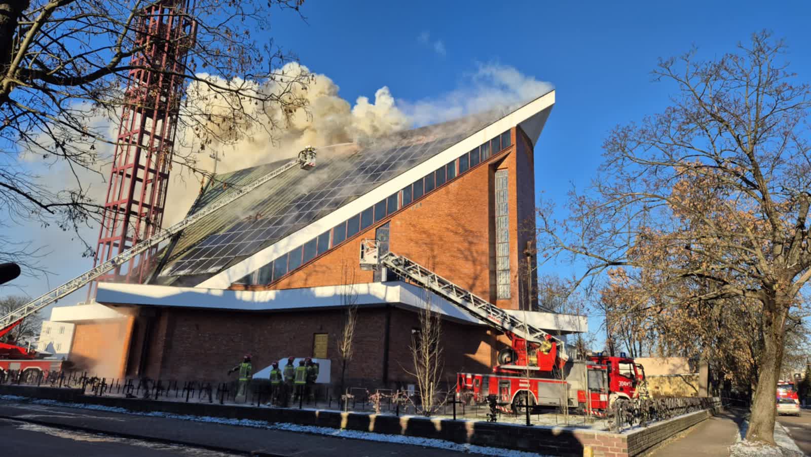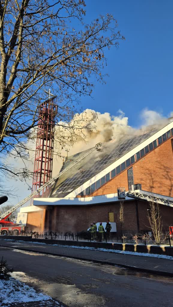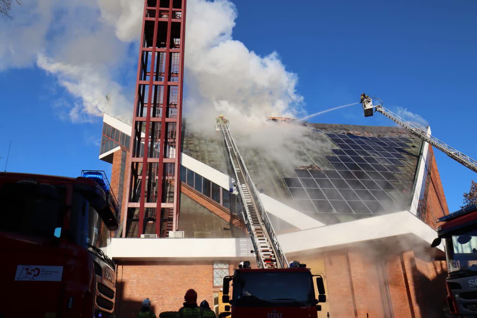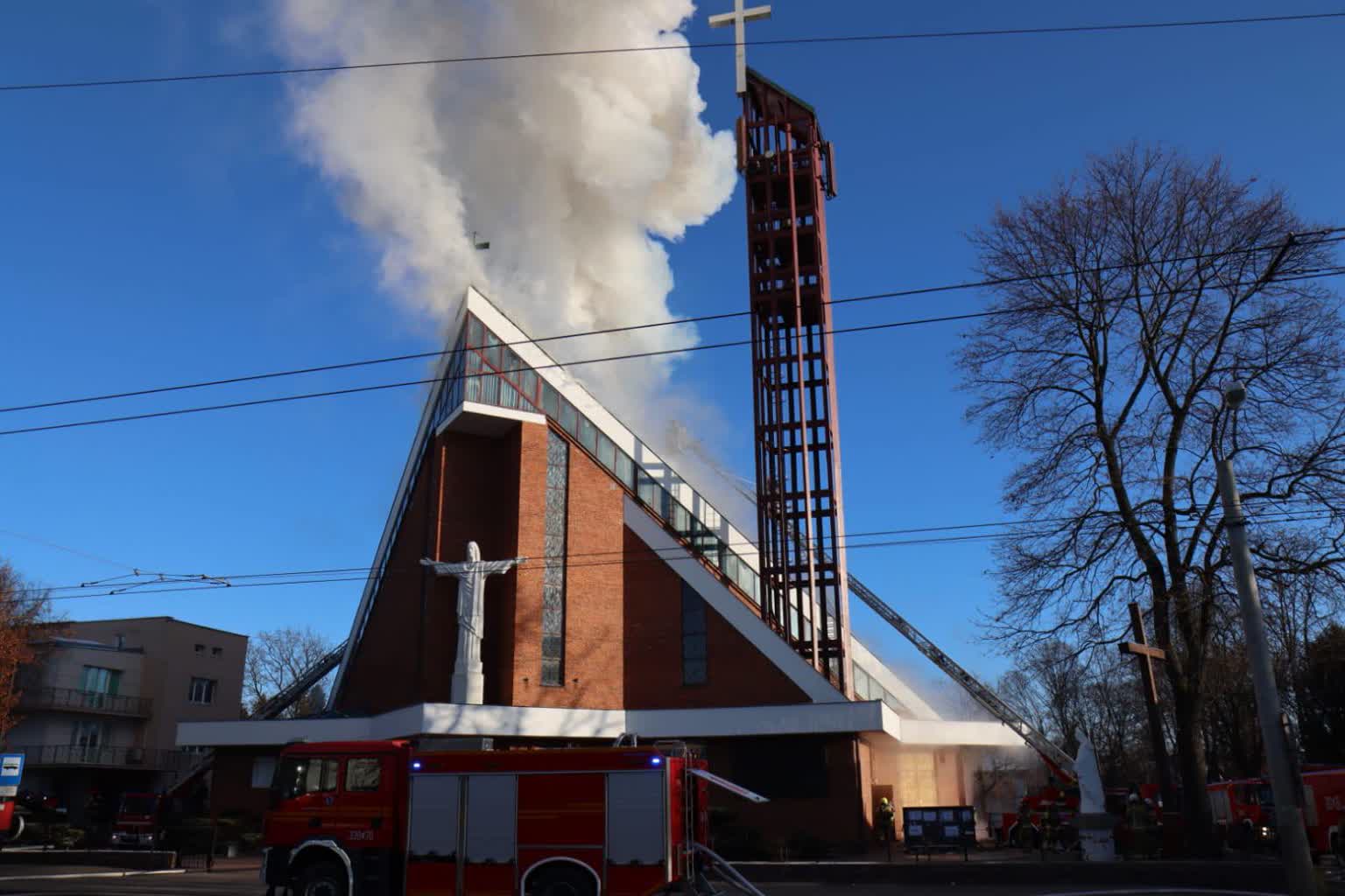 Trwa walka z pożarem kościoła od wezwaniem Najświętszego Serca Jezusowego przy ulicy Kunickiego w Lublinie. Pali się dach świątyni. Na miejscu jest ponad 20 zastępów straży pożarnej. W związku z pożarem i trwającymi działaniami strażaków całkowicie zablokowana jest ul. Kunickiego.