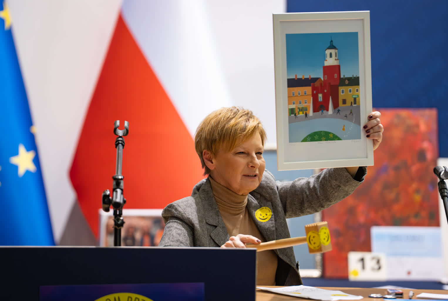 – To między innymi 400 puszek mięsnych, za które Tomasz Zeliszewski wylicytował grafikę „Drzewo Życia” czy 300 puszek rybnych, za które Mieczysław Jurecki wylicytował obraz „Baletnica i aniołek” – mówi dziennikarka Radia Lublin i pomysłodawczyni akcji redaktor Ewa Dados. – Za wieczne pióro, które ofiarowała patronująca naszej akcji pani Nawrocka, małżonka Prezydenta RP, otrzymaliśmy 420 kilogramów cukru. Natomiast dar naszego patrona duchowego arcybiskupa lubelskiego Stanisława Budzika w postaci medalu i albumu przyniósł akcji pół tony makaronu. Przepiękny medal przekazany przez pana prezydenta (Lublina Krzysztofa Żuka – red.), związany z żużlem, czyli naszą lubelską dumą, przyniósł 500 kilogramów kaszy.