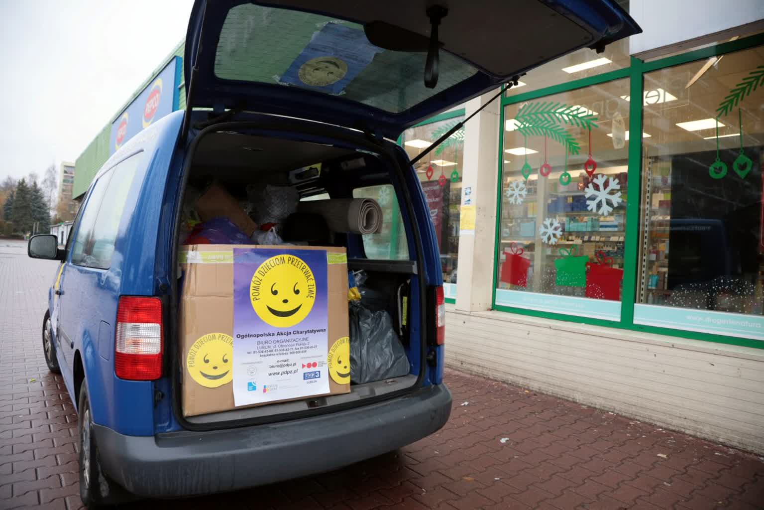 Dary zostają przewiezione do magazynu głównego zbiórki przy ul. Smoluchowskiego. Stąd będą rozwożone do placówek organizujących pomoc dla potrzebujących rodzin.