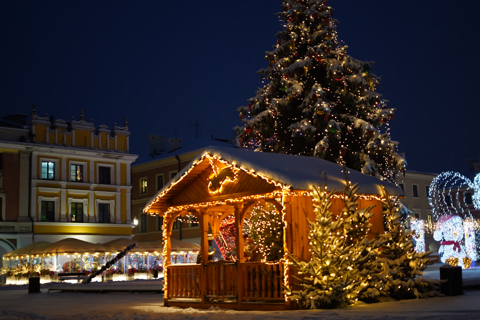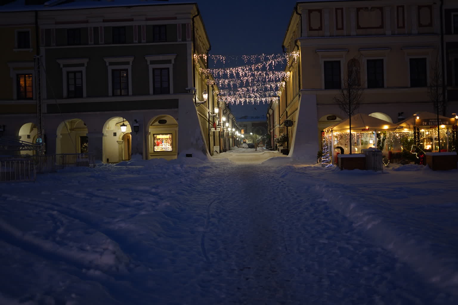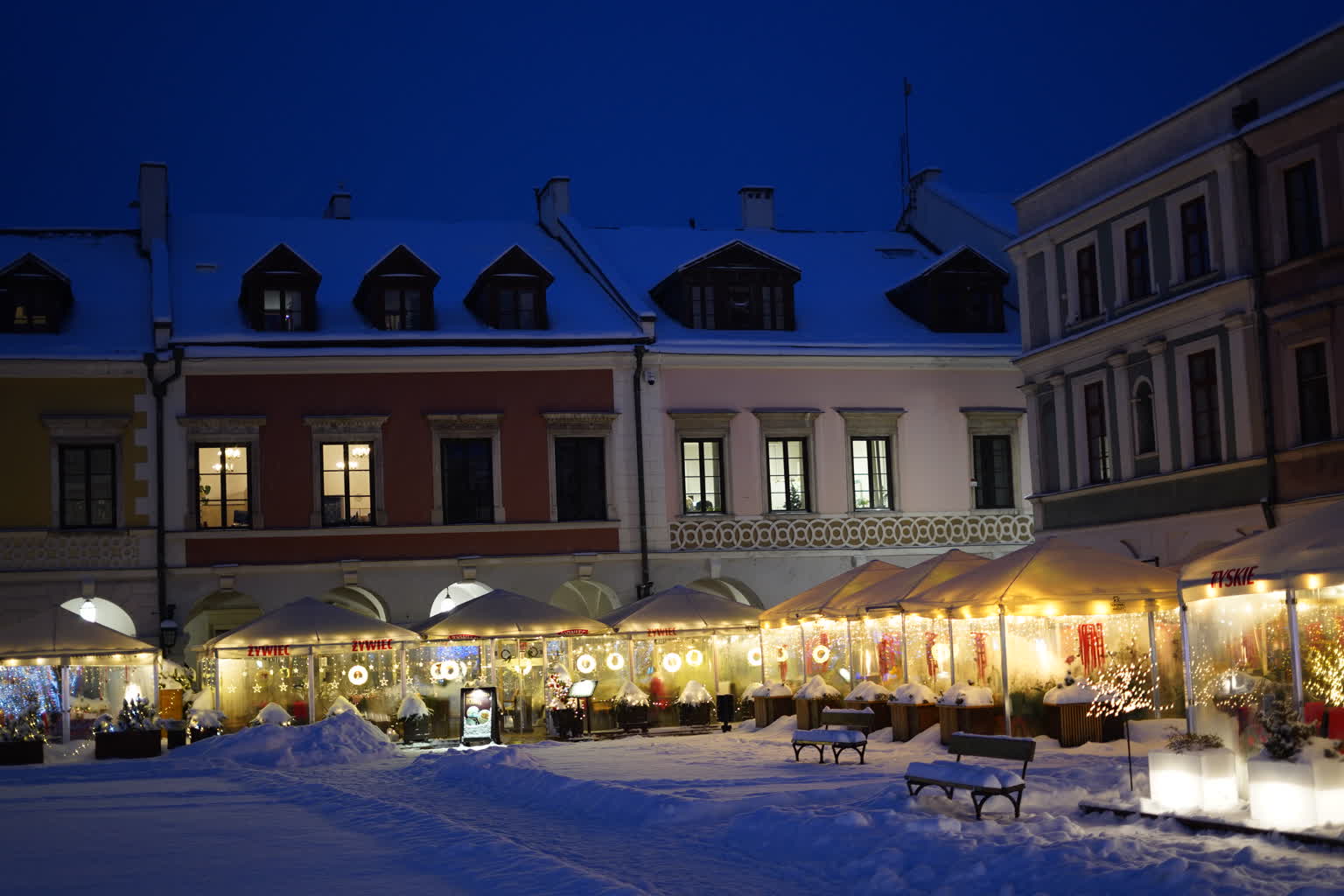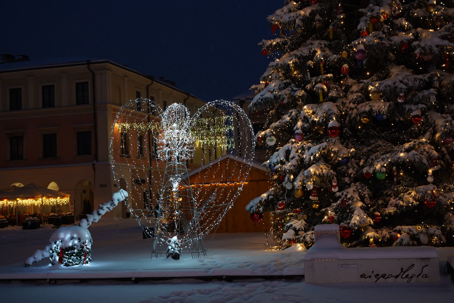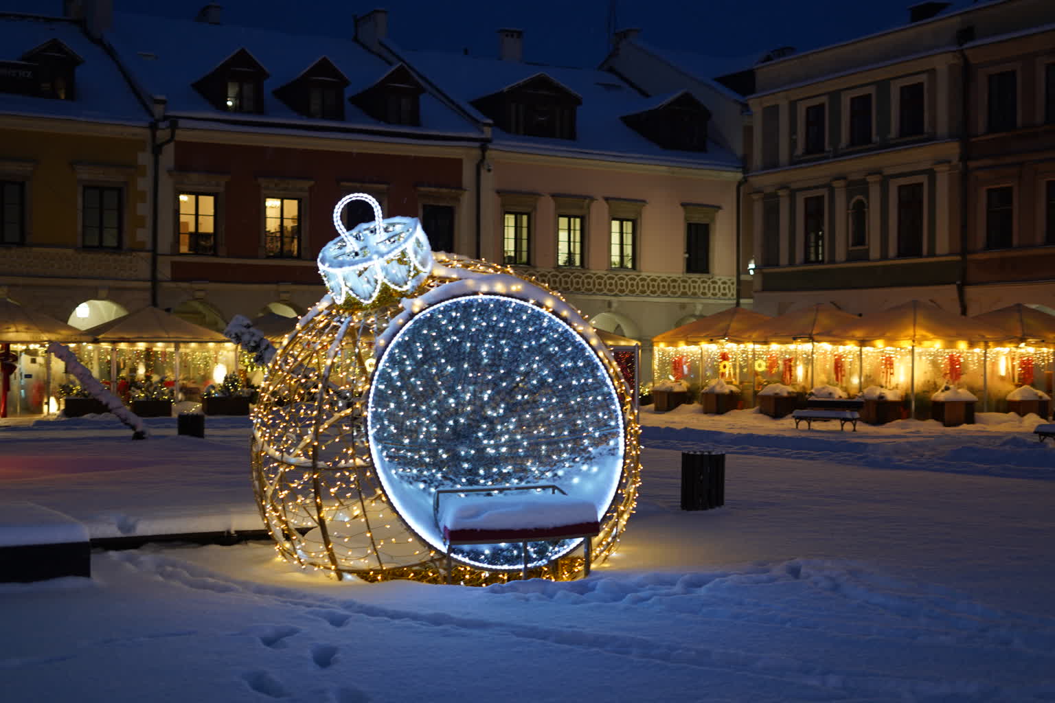 Śnieg przysypał Zamość, powodując duże problemy na ulicach i budząc frustrację kierowców. Pogoda „przegoniła” też przechodniów z Rynku Wielkiego, ale pozostawiła piękne widoki. Świąteczne iluminacje w otoczeniu białego puchu wyglądają naprawdę baśniowo.