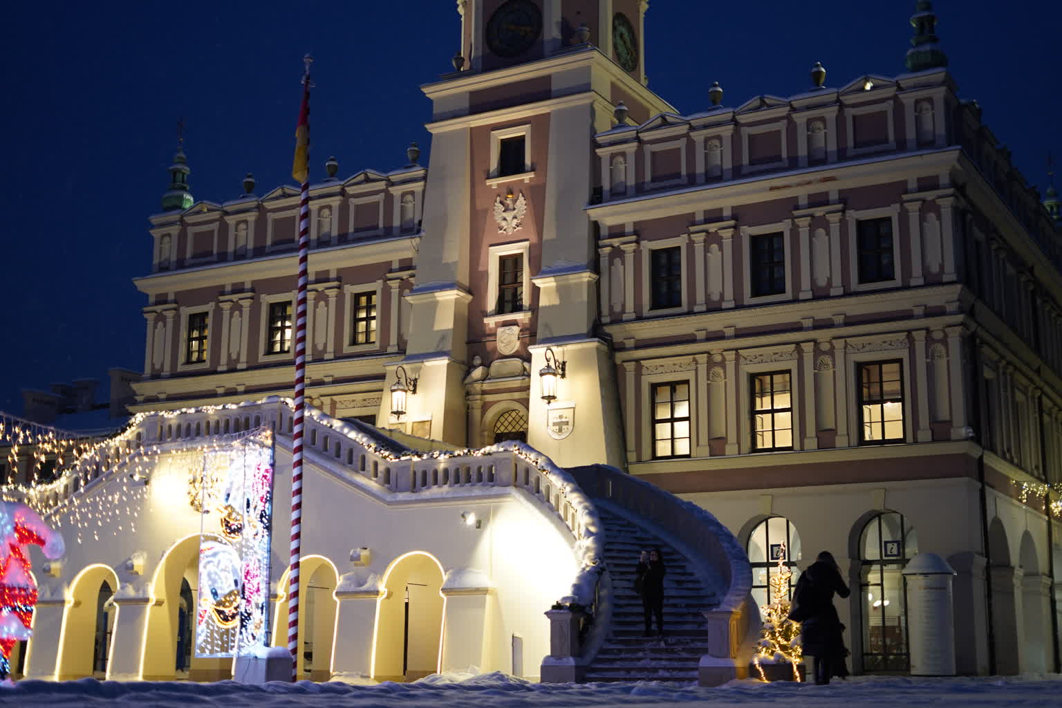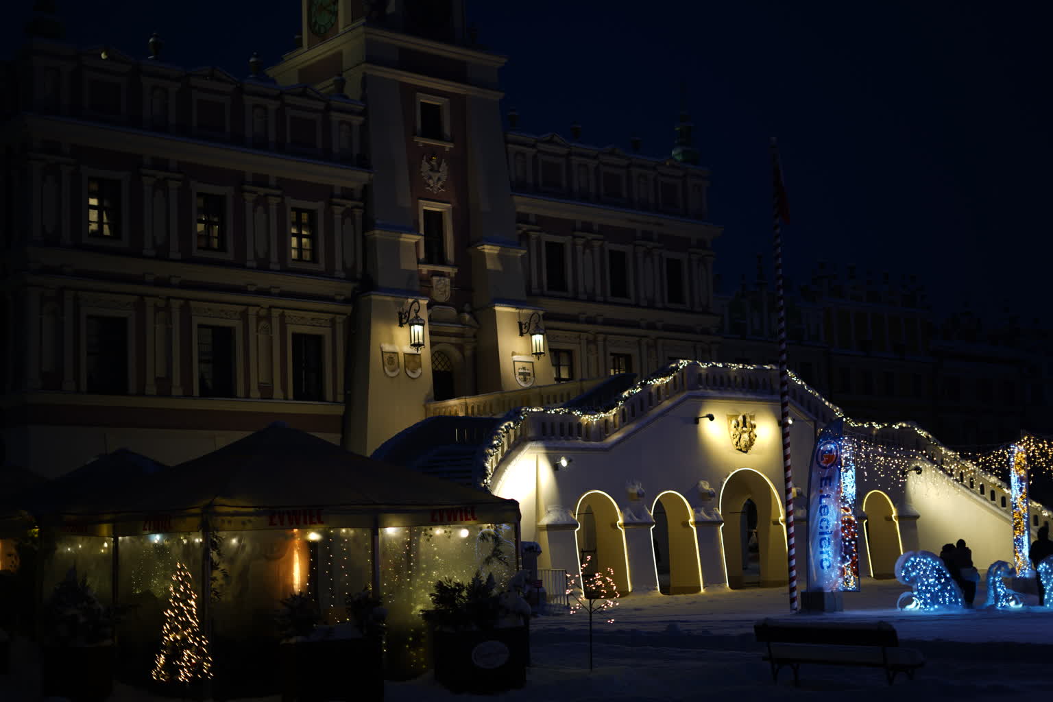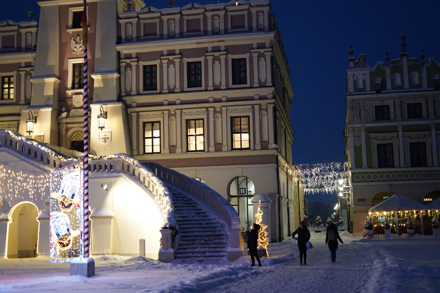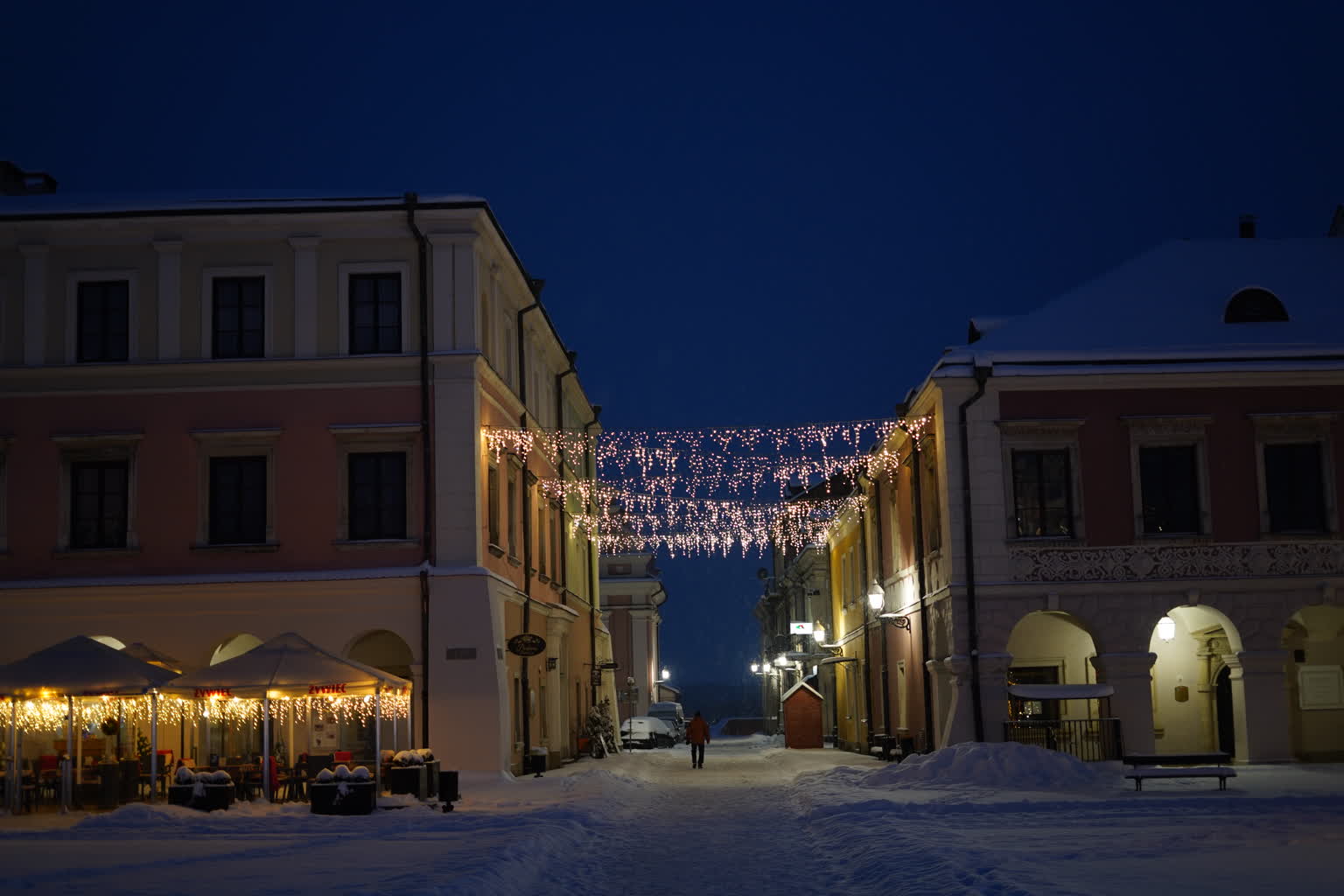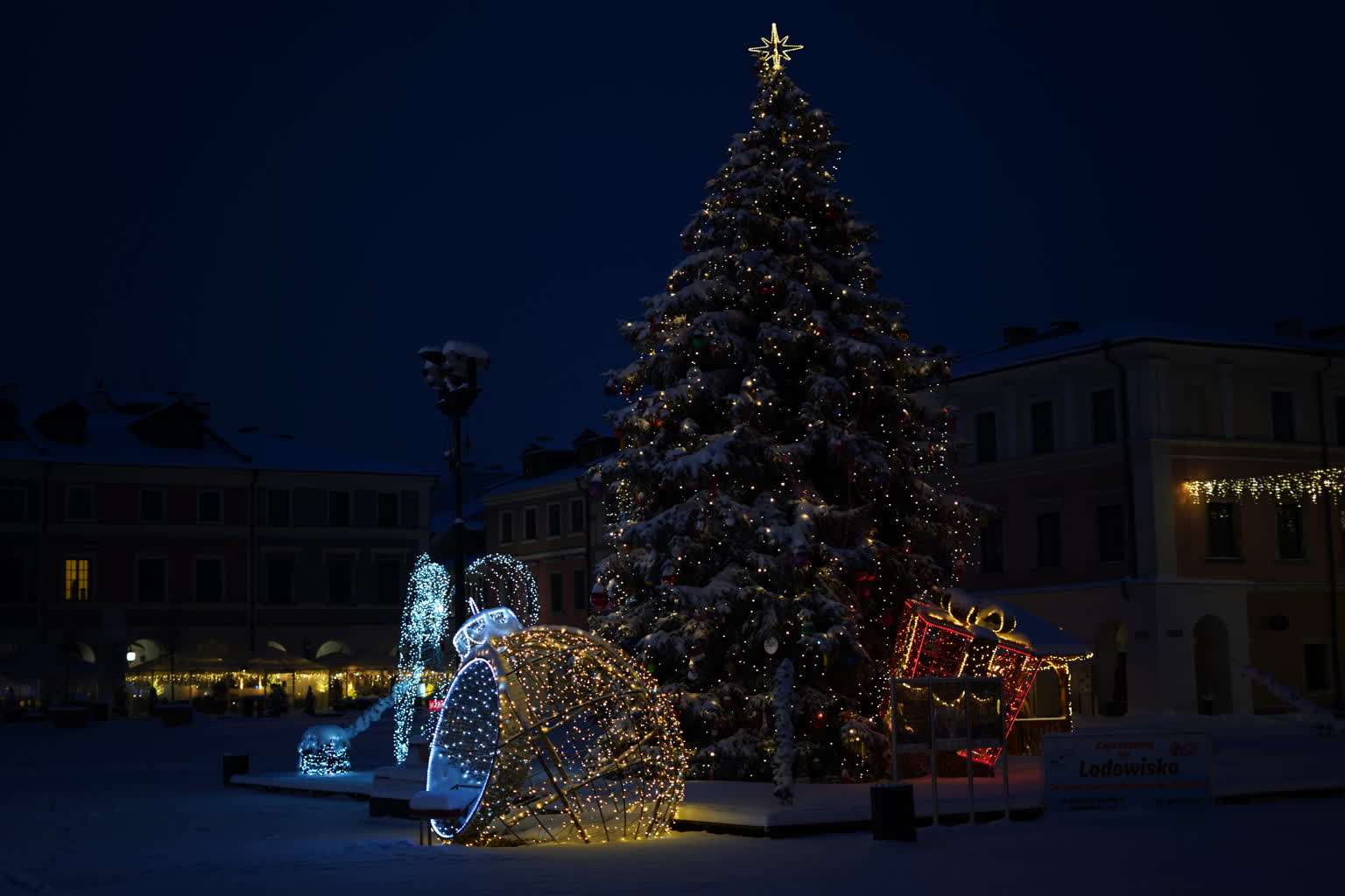 Śnieg przysypał Zamość, powodując duże problemy na ulicach i budząc frustrację kierowców. Pogoda „przegoniła” też przechodniów z Rynku Wielkiego, ale pozostawiła piękne widoki. Świąteczne iluminacje w otoczeniu białego puchu wyglądają naprawdę baśniowo.