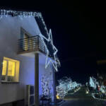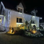 – Chyba w tym roku najładniejsze są te gwiazdy, które zrobił sąsiad. Aczkolwiek przybyło dużo nowych lampek w całym ogrodzie, po prawej stronie. Dach oświetlony. To wszystko zrobiło fajny smaczek.
