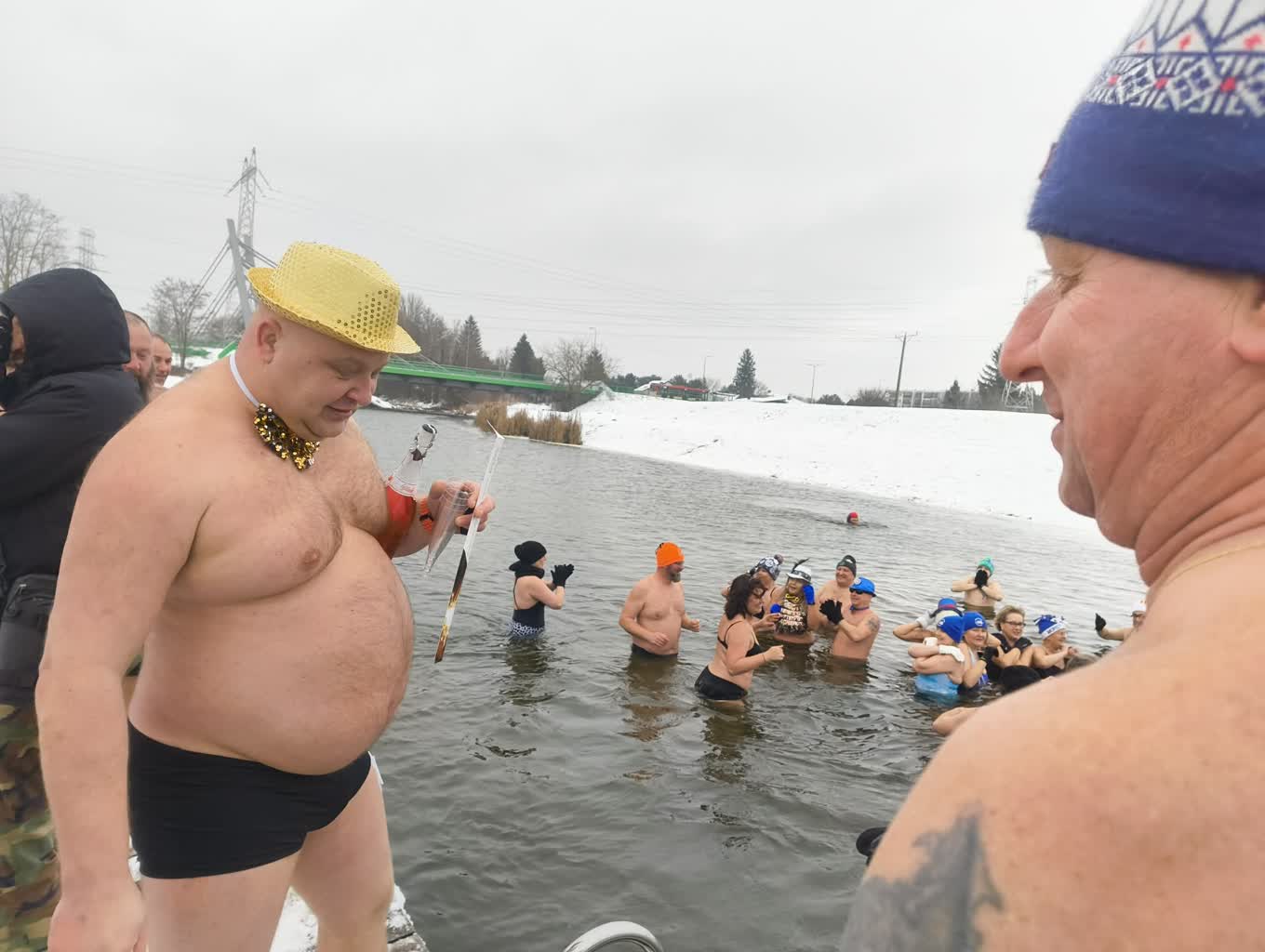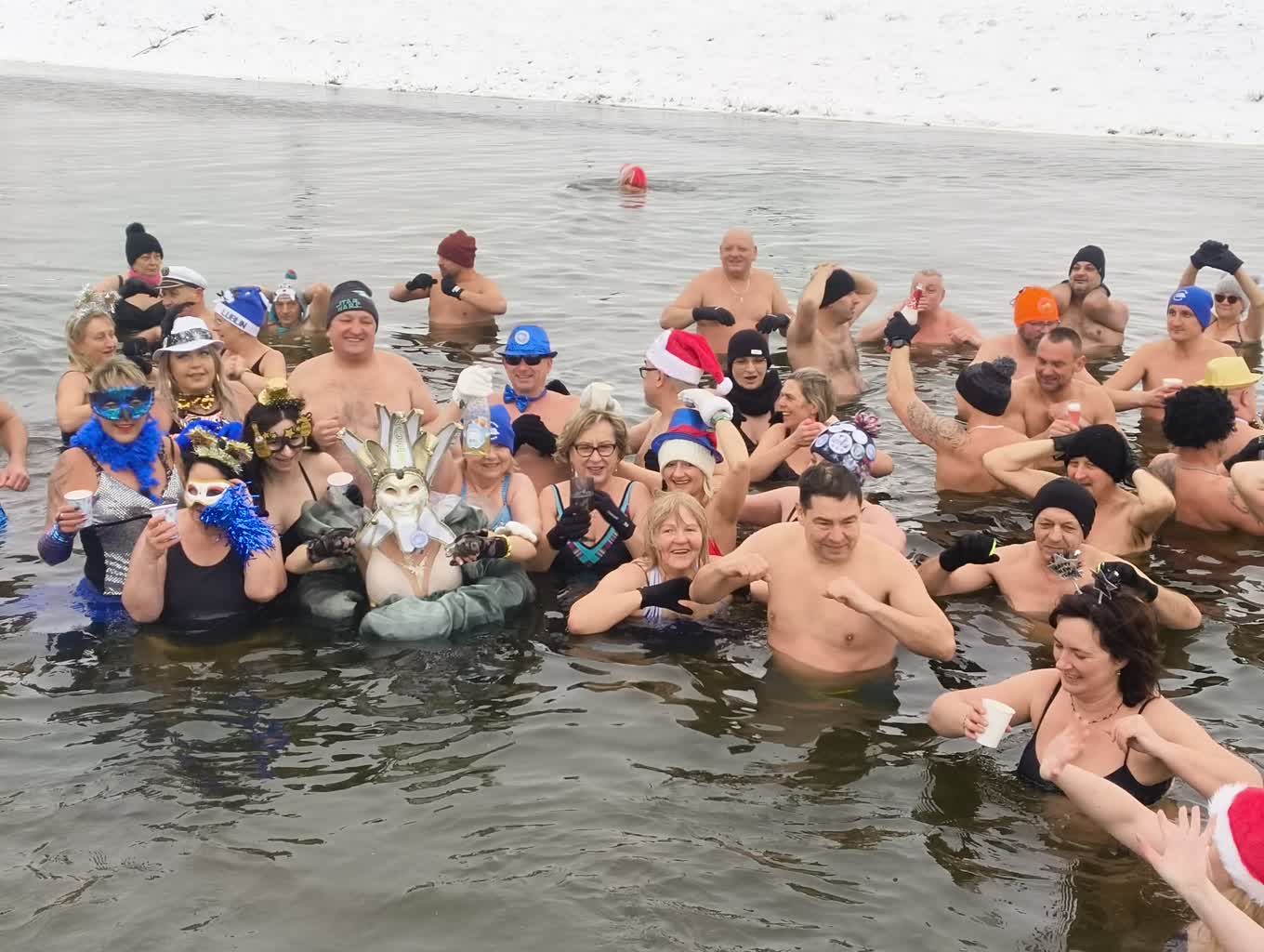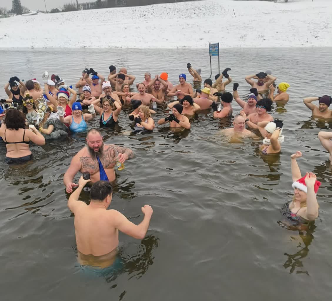 Lubelskie morsy przywitały nowy rok. W sumie do lodowatej wody przy tamie na Zalewie Zembrzyckim w Lublinie wskoczyło kilkadziesiąt osób. Niektórzy, zamiast strojów kąpielowych, mieli na sobie balowe kreacje.