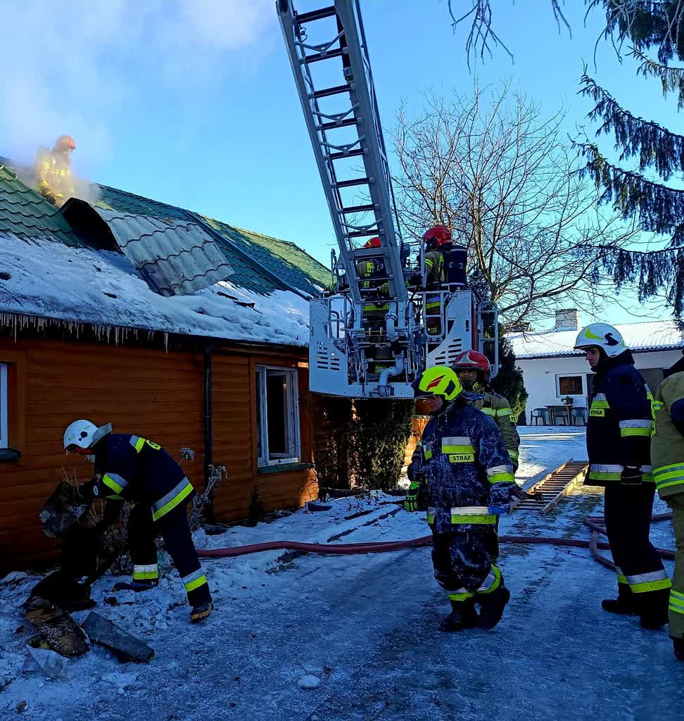 Drugi z pożarów wybuchł na poddaszu budynku mieszkalnego w miejscowości Przechód. Ogień objął całe mieszkanie. W środku przebywały dwie osoby, które samodzielnie opuściły budynek i nie potrzebowały pomocy medycznej.