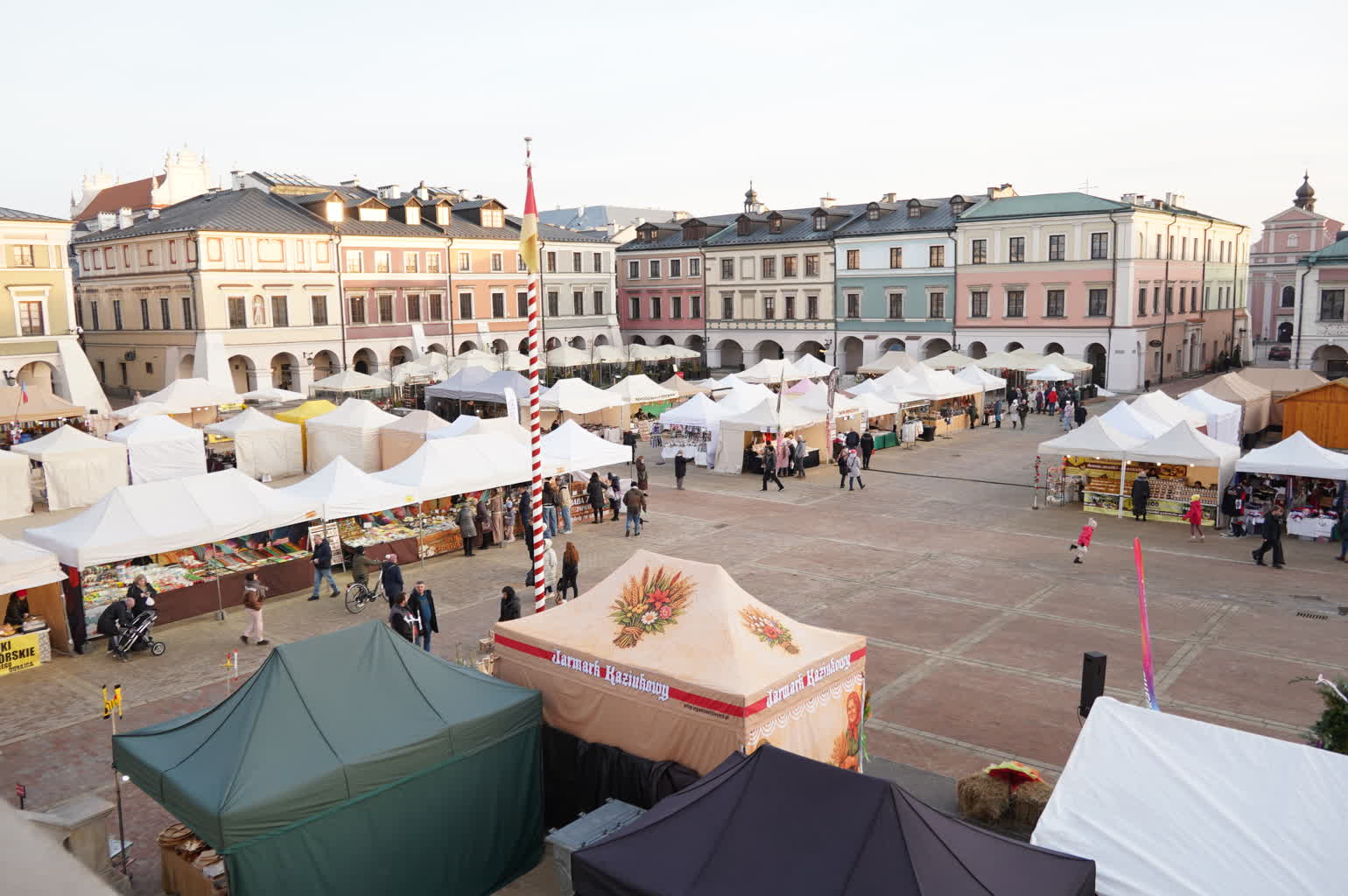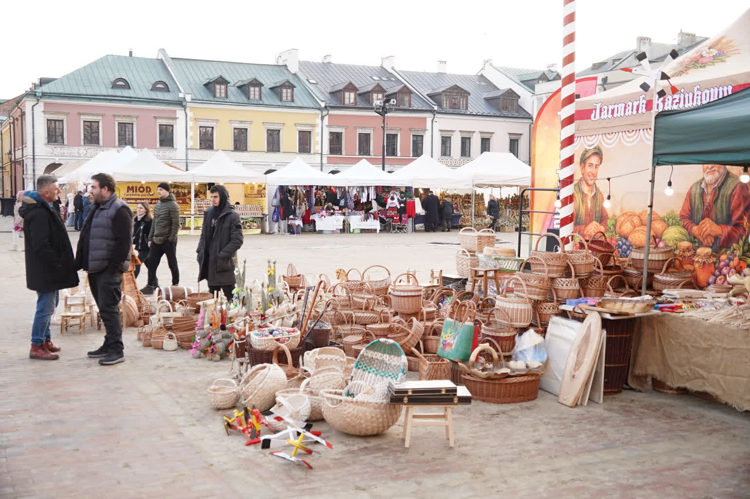 Dziś (27.02) rozpoczął się w Zamościu Jarmark Kaziukowy. Niemal cała płyta Rynku Wielkiego zajęta jest przez stoiska wystawiennicze. Rękodzieło, produkty tradycyjne, biżuteria, ceramika, przysmaki kuchni regionalnej oraz palmy, stroiki, koszyczki i serwety na zbliżającą się Wielkanoc – wszystko do dostępne jest w Zamościu do 1 marca. Z góry na sprzedający i kupujących spogląda życzliwie św. Kazimierz z Kamienicy pod św. Kazimierzem.