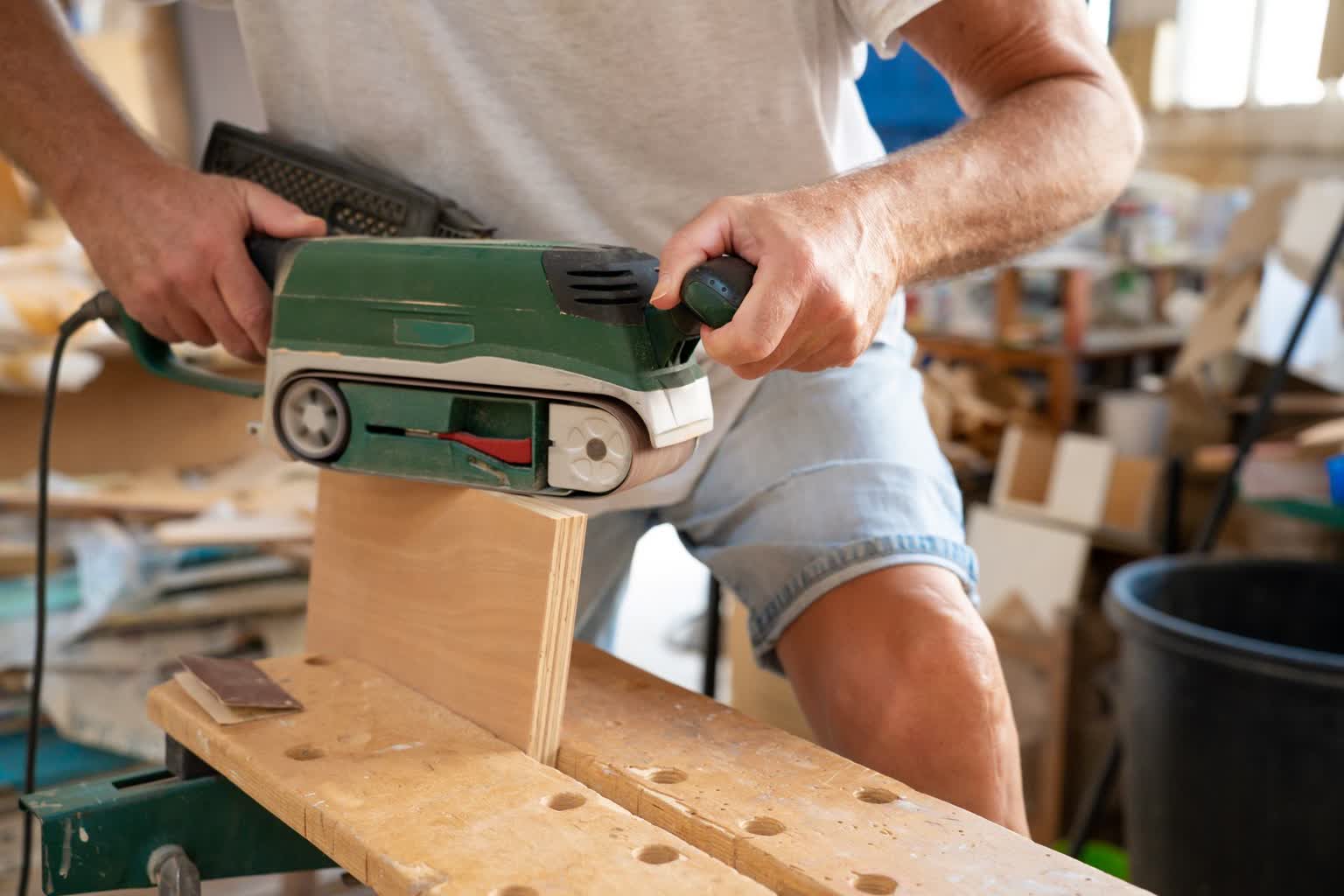 Wielu nowicjuszy popełnia błąd, dociskając narzędzie z całej siły do obrabianego materiału, mylnie sądząc, że znacznie przyspieszy to pracę. W rzeczywistości własny ciężar maszyny jest zazwyczaj wystarczający, aby skutecznie zdzierać kolejne warstwy twardego surowca. Zbyt mocny nacisk może doprowadzić do trwałego przypalenia drewna lub znacznego spowolnienia obrotów silnika, co bywa szkodliwe dla sprzętu. Pozwól urządzeniu swobodnie wykonywać swoją pracę, prowadząc je pewną ręką bez dłuższego zatrzymywania się w jednym miejscu. Przewód zasilający warto przewiesić przez ramię, aby nigdy nie znalazł się on na drodze rozpędzonej taśmy ściernej.