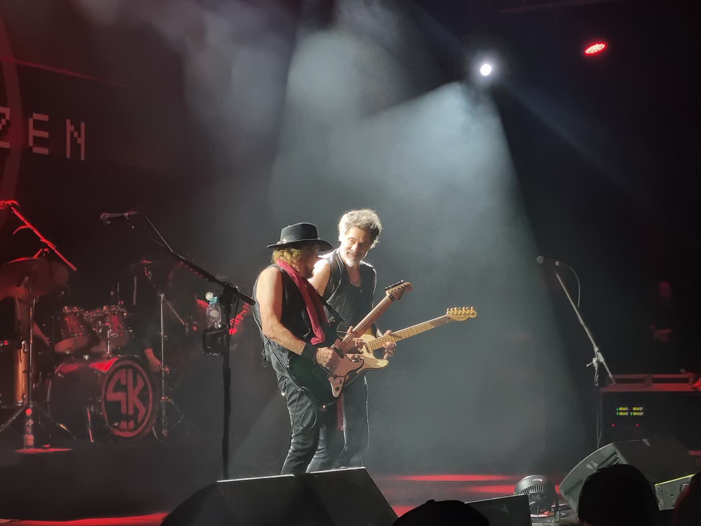 Adrian Smith to wieloletni gitarzysta Iron Maiden, który jako niepokorna dusza, niejednokrotnie próbował swoich sił poza zespołem. W końcu jego drogi przecięły się z Richiem Kotzenem, cenionym artystą który zdążył już solidnie zapracować na własne nazwisko. Z pozoru eklektyczny mariaż heavy metalowego specjalisty od chwytliwych riffów i jazgotliwych solówek z rockowo-grunge’owym naturszczykiem sprawdził się nad wyraz dobrze. Dowodzą tego dwa wydane albumy: debiutancki z 2021 roku oraz “Black Light / White Noise”, który ukazał się 4 lata później. To po prostu świetny, melodyjny rock, czasem o delikatnie bluesowym zabarwieniu, a czasem nawiązujący do luzackiego, amerykańskiego pop-rocka z przyjemnym, Springsteenowskim vibe. Mimo niewątpliwych walorów jakościowych, byłem ciekaw jak wielu entuzjastów będzie miał ten duet w wersji live .