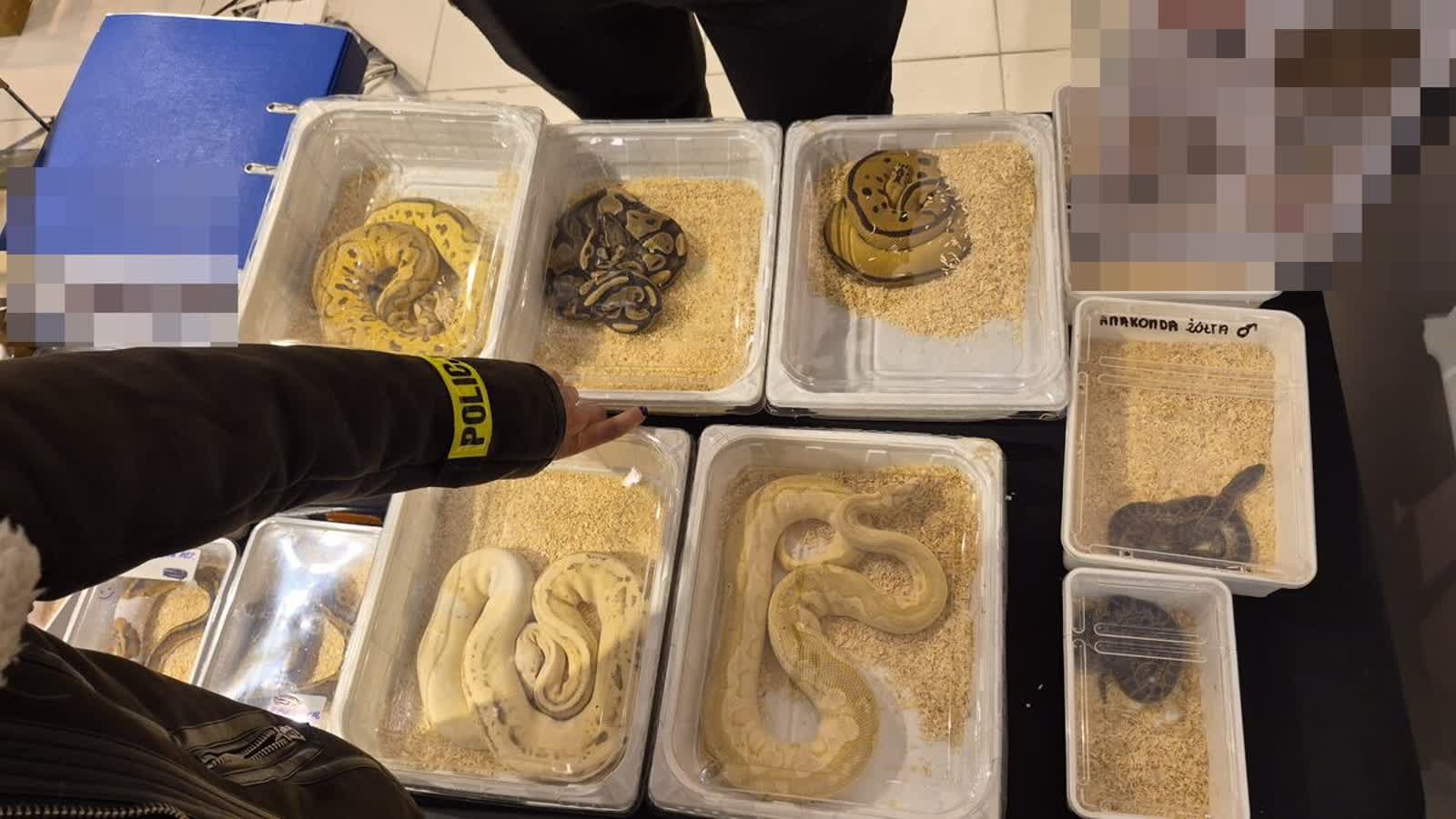 Funkcjonariusze zabezpieczyli 3 kameleony lamparcie i 5 pytonów królewskich. Zwierzęta zostały przekazane do Centralnego Azylu dla Zwierząt, gdzie zapewniono im odpowiednie schronienie i opiekę.