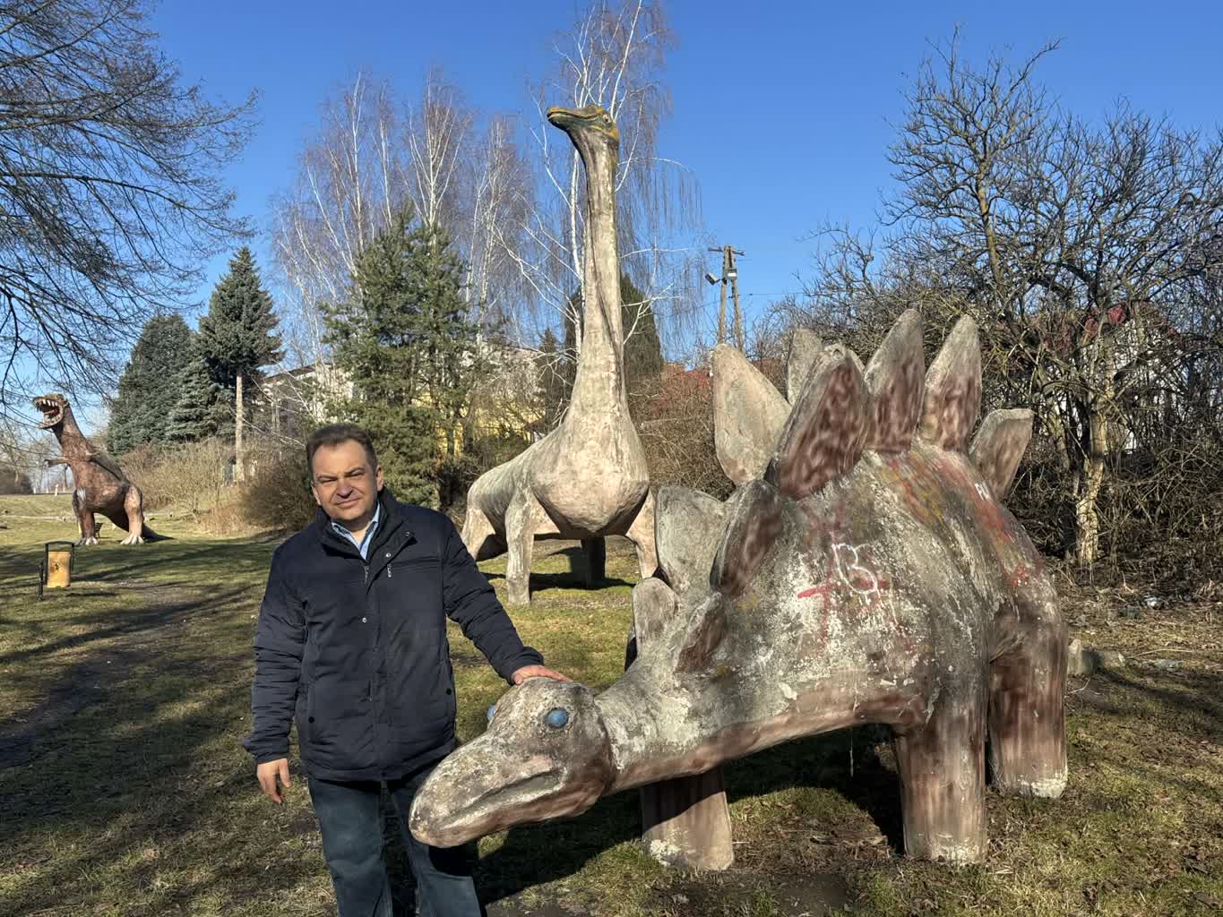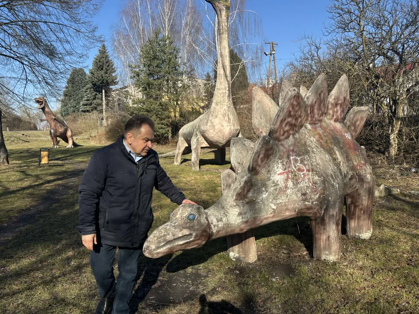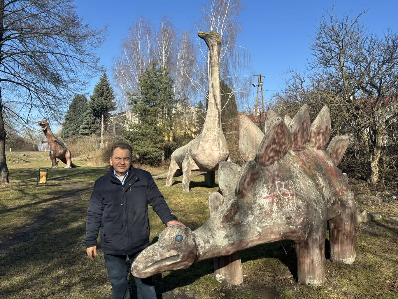 – Generalnie starał się je robić różne, żeby nie było to takie powtarzalne – mówi Paweł Brodzisz. – Przekaz był taki, żeby to było dla dzieci jako plac zabaw, ponieważ wtedy były bardzo siermiężne te place zabaw. Natomiast dinozaury nową jakość wprowadziły tutaj w Łęcznej. To był okres takiego napływu bardzo dużej liczby osób do pracy w górnictwie. No to myślę, że każdy miał zdjęcie, fotografie i to było takie miejsce, gdzie trzeba było przyjść, żeby pokazać dzieciom, że coś takiego jest. Są takie właśnie nasze, łęczyńskie. Na miarę tamtych możliwości, czasów. To przez to, że to są dinozaury, nie wiadomo skąd. Być może one tutaj kiedyś w Łęcznej były, przed tysiącami lat i jest to jakaś taka ciekawostka. Tym bardziej, że na sklepie też są dinozaury namalowane. Trzeba powiedzieć, że one nie są dewastowane, bo one już mają no prawie 40, 50 lat niektóre. Mieszkańcy też są z nich dumni i się cieszą, że coś takiego mają, co jest takie nietuzinkowe.