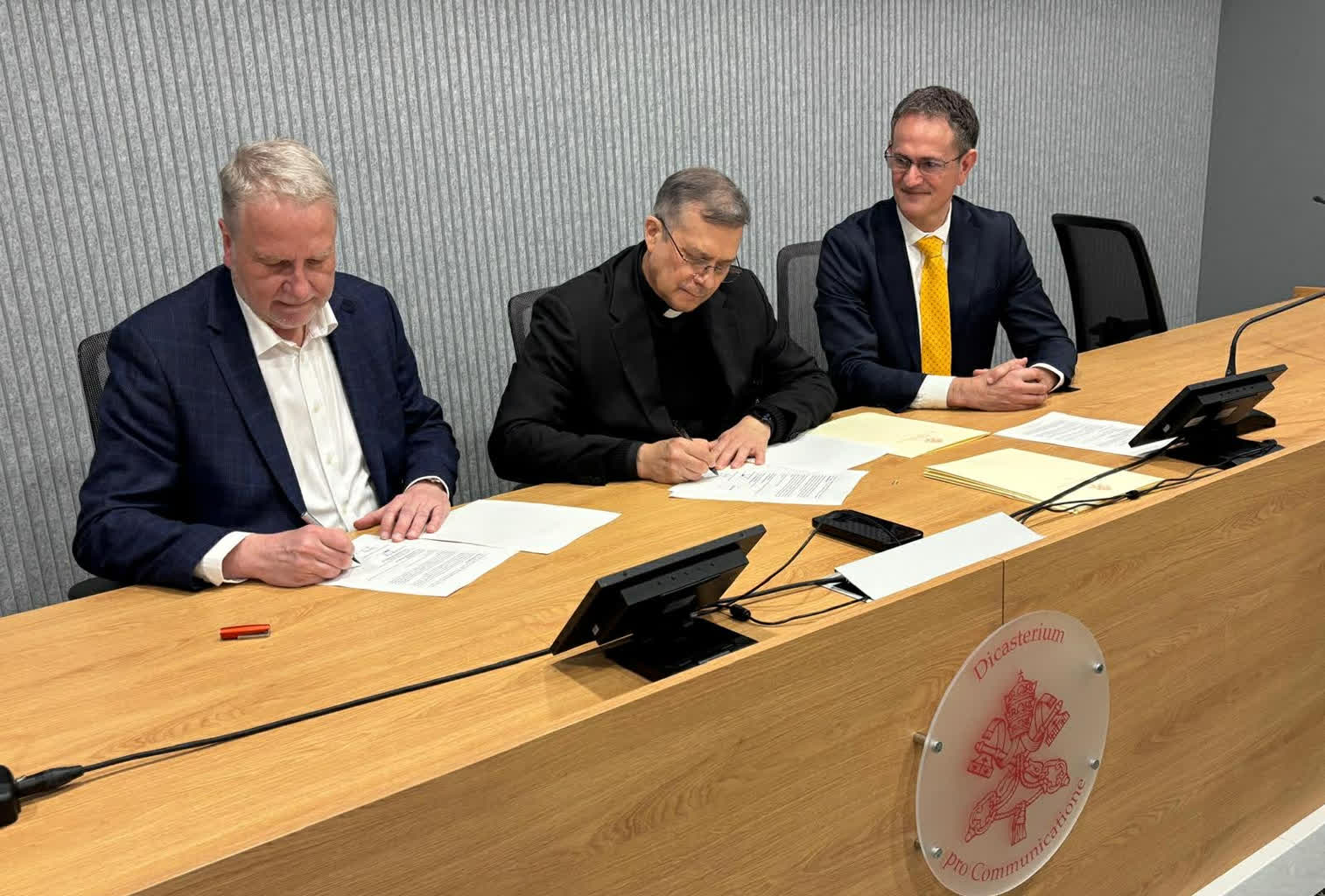 Do Rzymu przybyli szefowie siedmiu rozgłośni regionalnych Polskiego Radia, m.in. Mirosław Kasprzak z Radia Lublin, Tomasz Duda z Radia Wrocław oraz Jacek Grudzień z Radia Łódź, aby w siedzibie Dykasterii ds. Komunikacji podpisać porozumienie o współpracę.