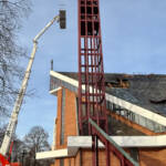 – Nadal trwają prace rozbiórkowe. Oczywiście za nami już dawno etap zdjęcia blachy i niedopalonego deskowania. Potem był taki długi etap, który odbywał się zimą, w trudnych warunkach. Zdejmowana była wełna mineralna. Było jej dosyć dużo, strop był dobrze izolowany. Ale ona nasiąkła wodą, zamarzła. Jej zdejmowanie więc to była ciężka praca. Myślę, że w tej chwili jakieś 3/4 elementów betonowych jest już skutych. To jest praca na wysokościach, niebezpieczna, więc nie przebiega bardzo szybko. Ale mamy nadzieję, że przez taką ostrożną pracę uda się zachować ściany. Jest ciągle nadzieja, że ściany nie zostały mocno naruszone, więc czekamy cierpliwie aż firma zakończy ten etap prac. Potem będzie etap zdejmowania konstrukcji stalowej, która też jest zniszczona. W czasie pożaru powyginała się, a częściowo połamała, więc nie nadaje się do dalszego użytku w takiej formie. Po tym etapie przejdziemy do oceniania szkód w dalszych miejscach, do inwentaryzacji tego, co się zachowało. Na podstawie tego będziemy mogli wyciągnąć kilka wniosków. Po pierwsze, czy dalej coś trzeba rozbierać. Po drugie, jak daleko będą sięgały granice przebudowy kościoła, co musimy odbudować, a co jest do wykorzystania. Z tego wynikać też będzie kwota odszkodowania. No i oczywiście w przyszłości, kiedy powstanie projekt, oszacowanie kosztów odbudowy – odpowiada  ksiądz Waldemar Sądecki.