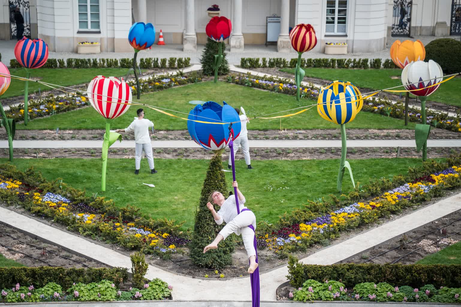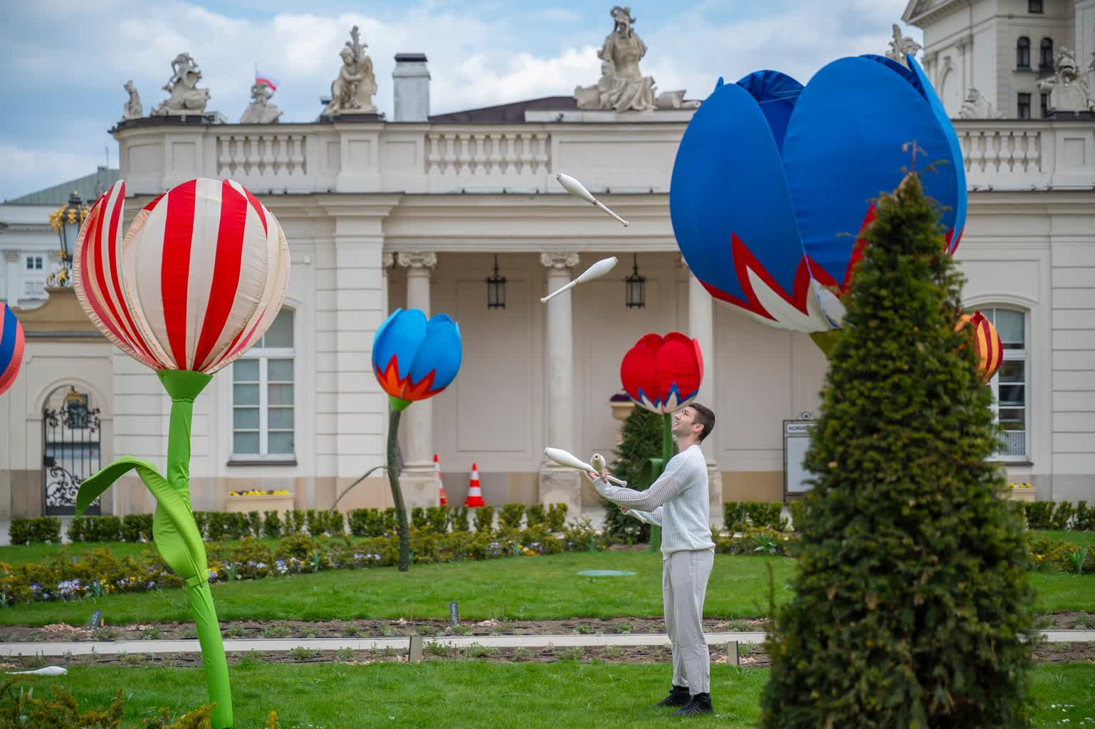 A już w czwartek (16.04) lubelscy artyści zaprezentowali się przed budynkiem Ministerstwa Kultury i Dziedzictwa Narodowego. „Zakwitły” tam tulipany autorstwa Jarosława Koziary, a dziedzińcu budynku i na Krakowskim Przedmieściu w Warszawie pojawili się lubelscy sztukmistrze.