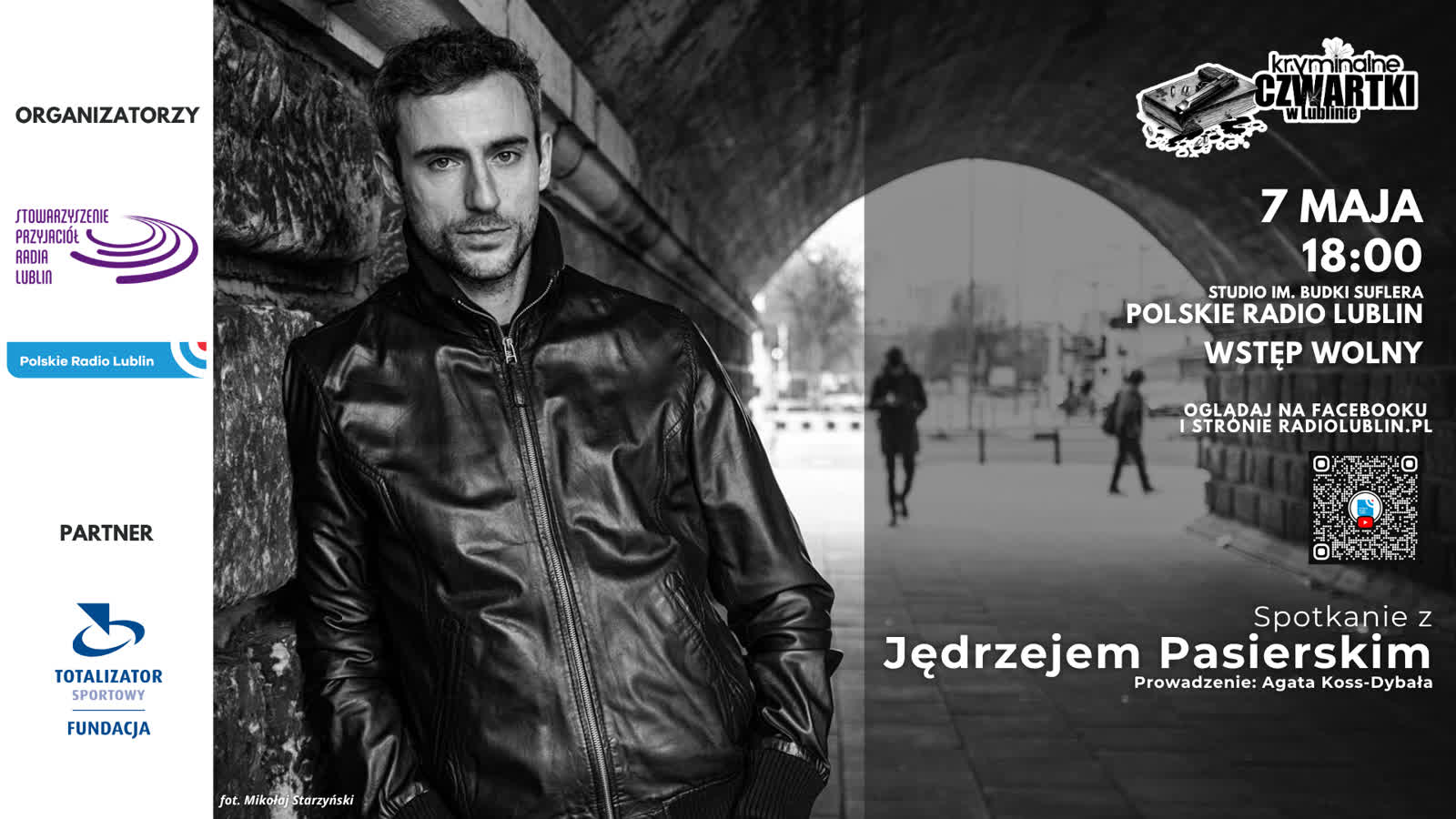 7 maja 2026, godz. 18.00, Studio im. Budki Suflera, w cyklu Kryminalne czwartki w Lublinie spotkanie z Jędrzejem Pasierskim. Spotkanie streamingowane na radiolublin.pl, profilu Radia Lublin i Stowarzyszenia Radia Lublin na Facebooku oraz radiowym kanale YouTube.