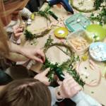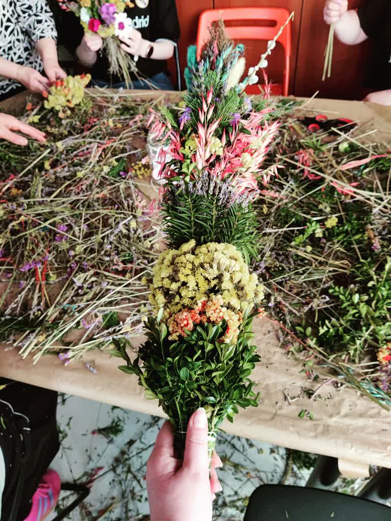 Na uczestników czekało mnóstwo kreatywnych aktywności – od wyplatania tradycyjnych palm z suszonych ziół i traw, przez tworzenie wiosennych wianków i ozdób, aż po przygotowywanie świątecznych dekoracji i pisanek w różnych technikach. Nie zabrakło też propozycji dla najmłodszych, którzy mogli własnoręcznie wykonać kolorowe ozdoby i rozwijać swoją wyobraźnię.